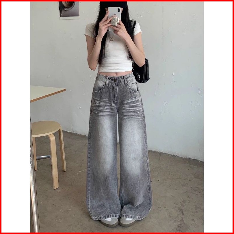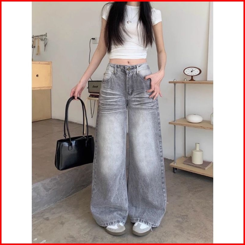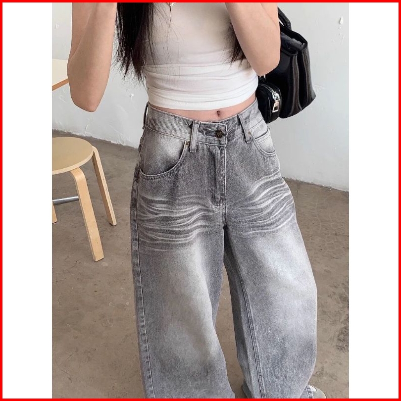 Lulu Abu-abu Kulot Highwaist Celana Panjang Wanita-baggy Jeans Wanita--goresan Halus Dan Jelas