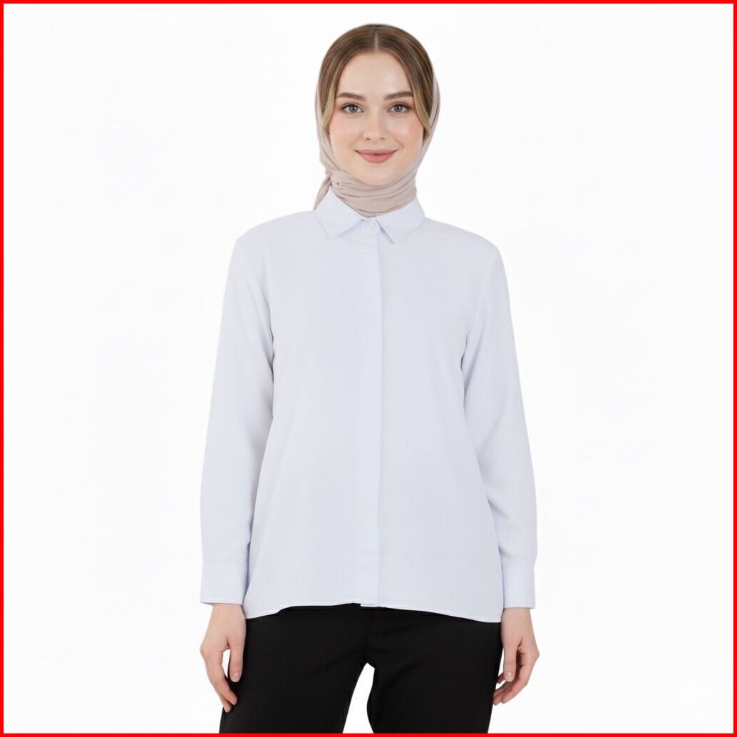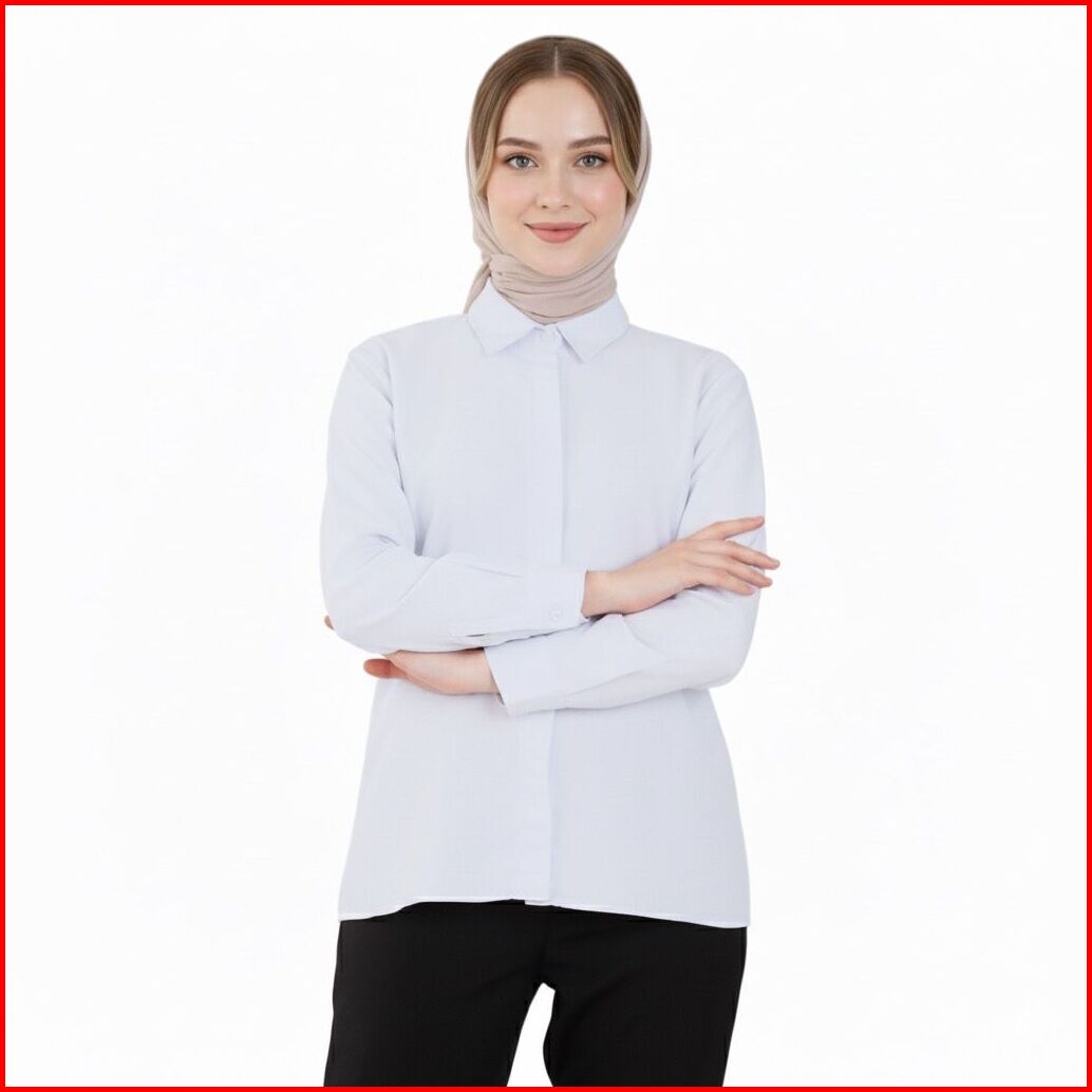 Wuskelipmen Kemeja Wanita Putih Katun Tebal Lengan Panjang