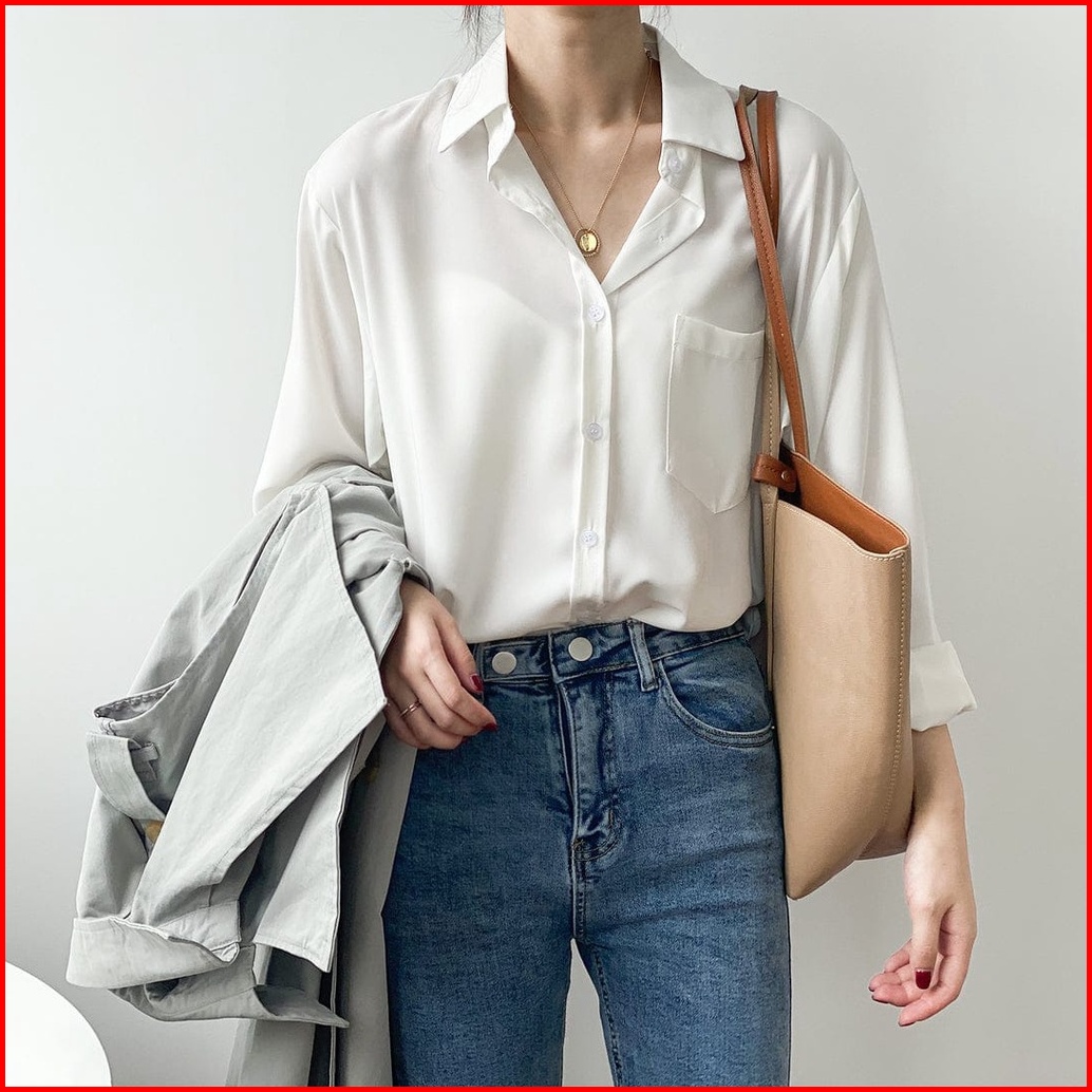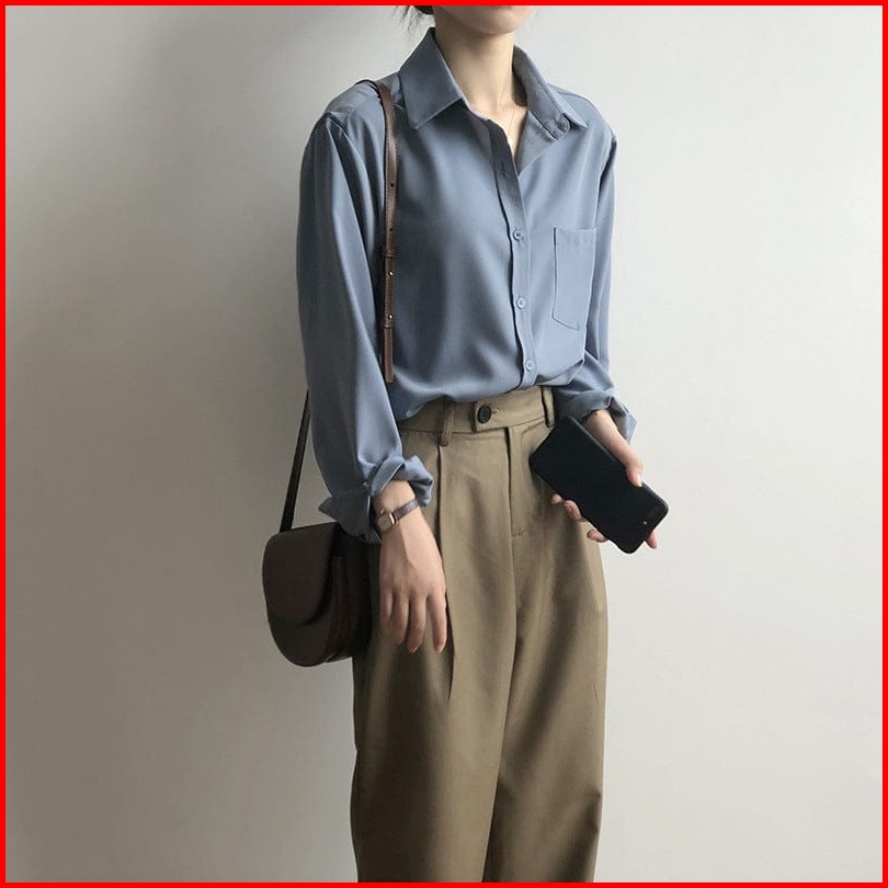 - Lova Top Shirt Polos Premium Atasan Kemeja Basic Wanita Muslim Korean Import Fit L