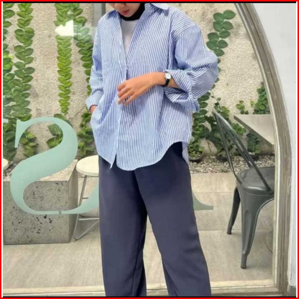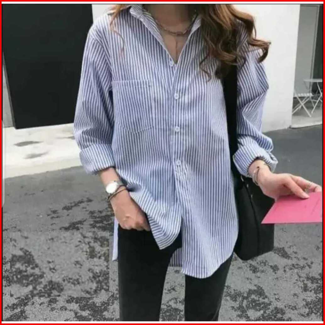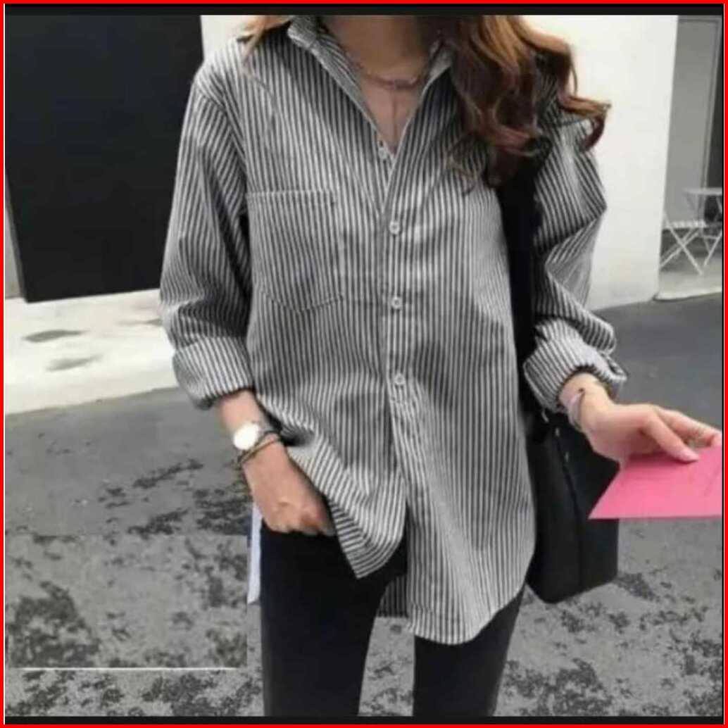 Kemeja Wanita Salur Garis Garis Oversize Terbaru Dan Kekinian