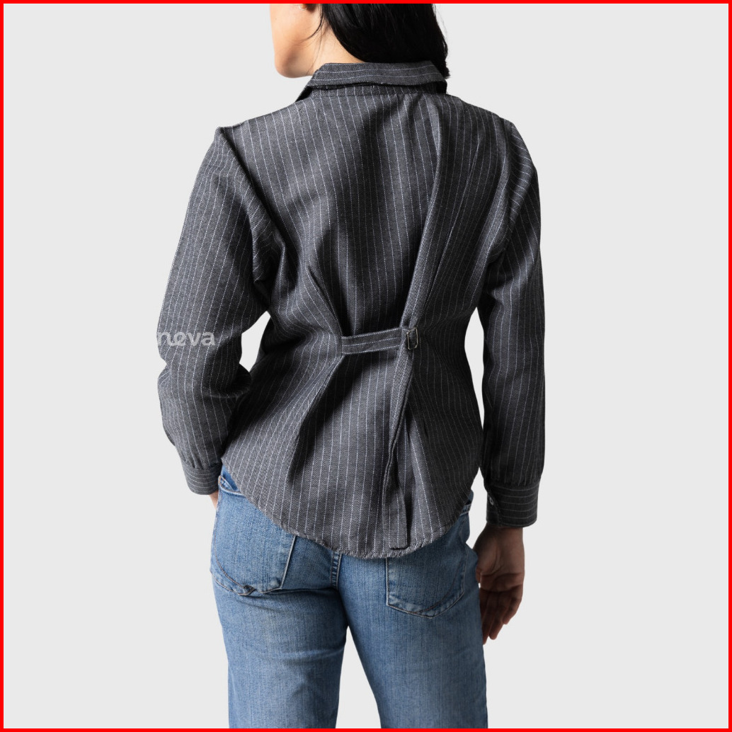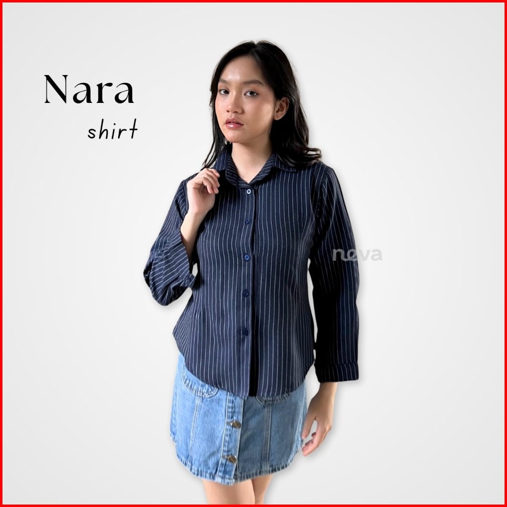 Neva Style - Nara Shirt Kemeja Fit Body Tali Belakang Bahan Semiwool Stripe Kemeja Kerja Wanita New