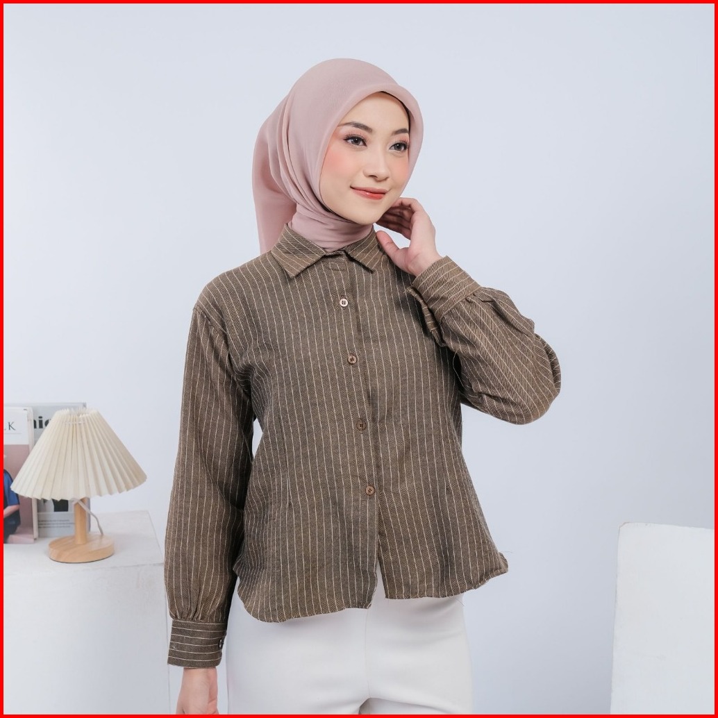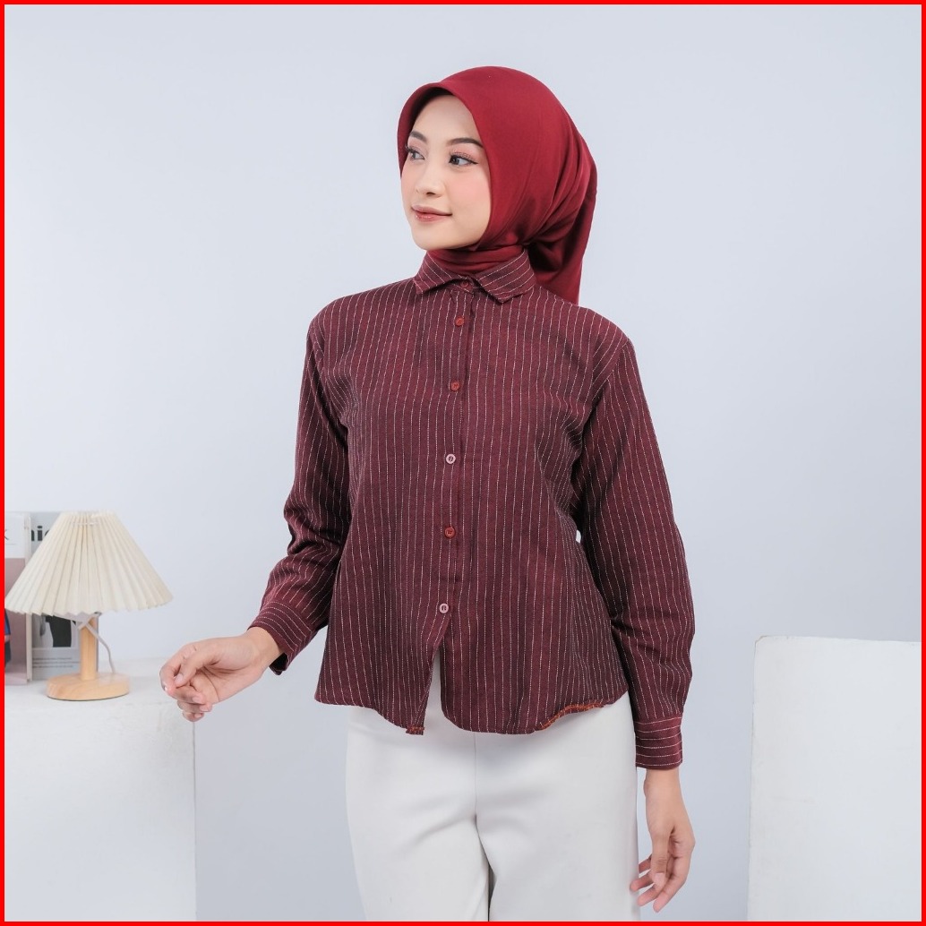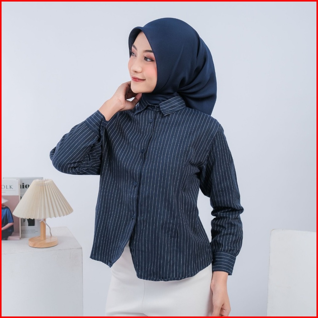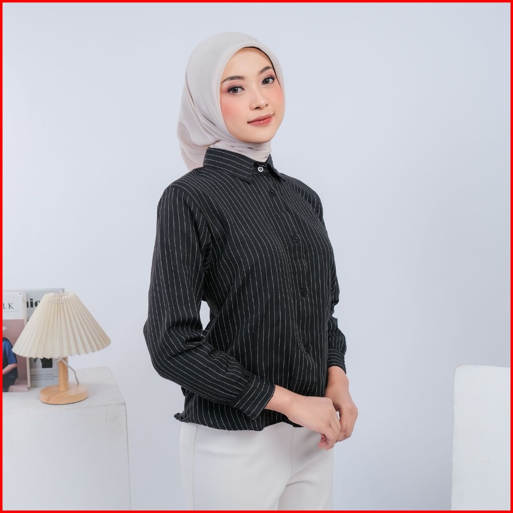 Nasyasha - Luna Stripe Kemeja Fitted Kemeja Atasan Wanita Stripe Salur Basic Casual