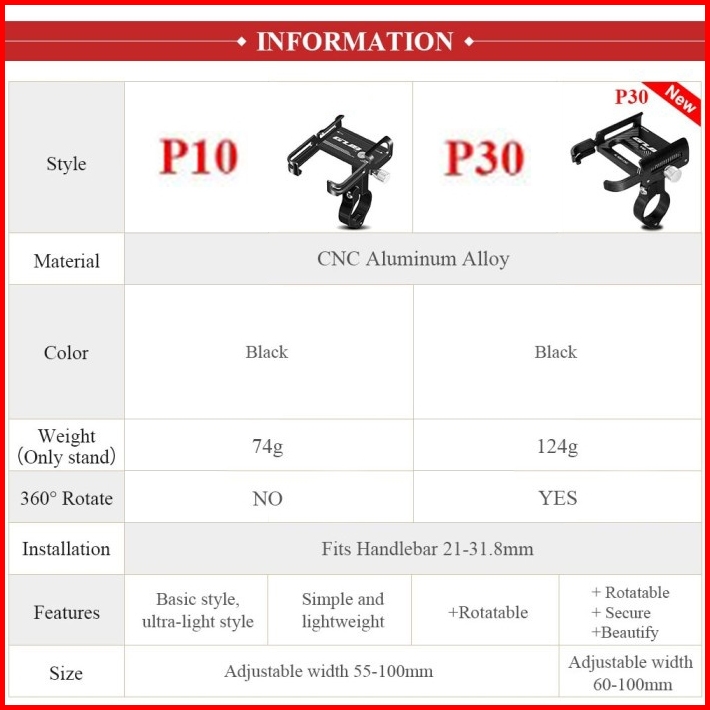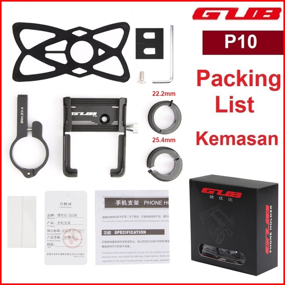 Gub P10 P30 Holder Handphone Phone Anti Getar Aluminium Stang Sepeda Motor Bracket