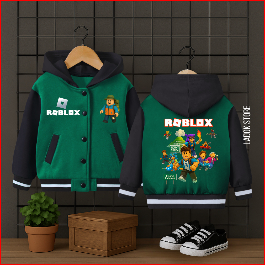 Jaket Anak Roblox Mountain Climbing Baseball Varsity Hoodie Anak Laki Laki Perempuan Terbaru
