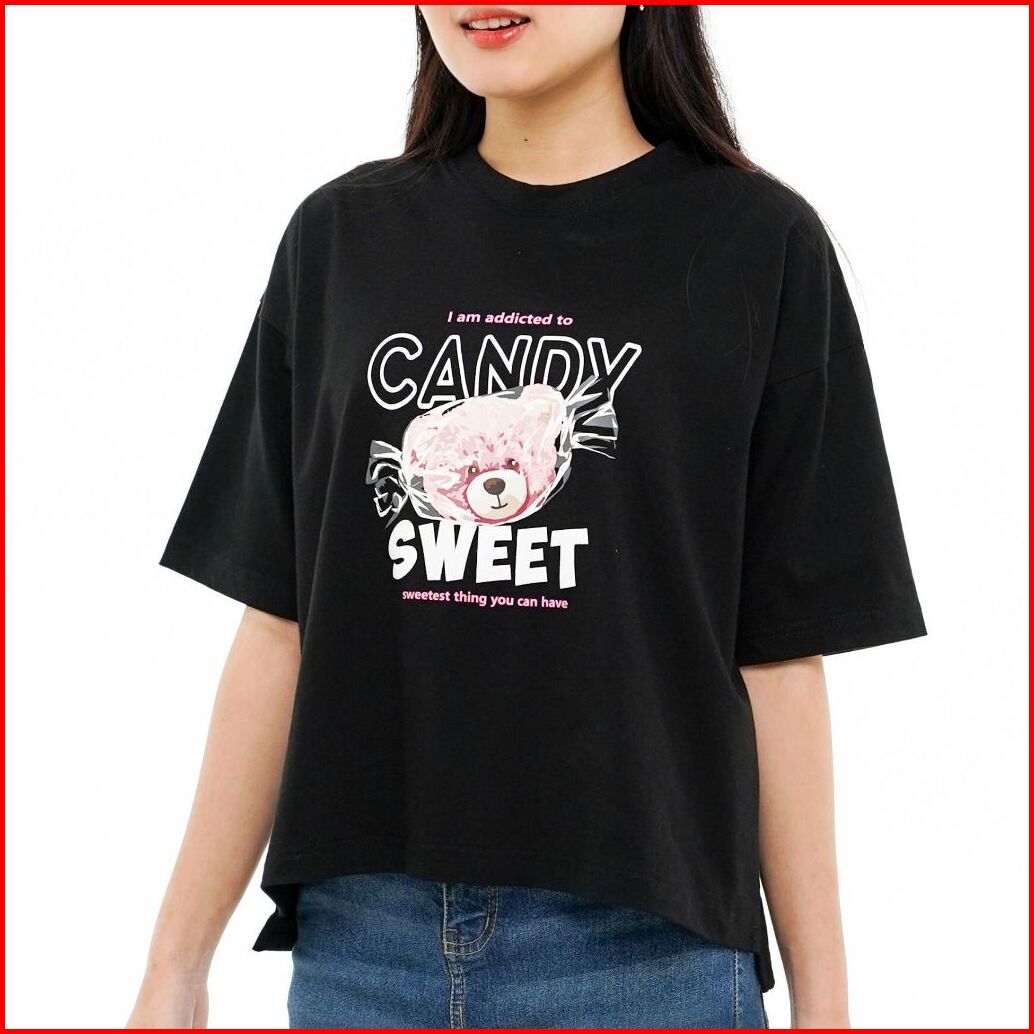 Aerostreet T Shirt Boxy Candy Bear Black Woman 1c000