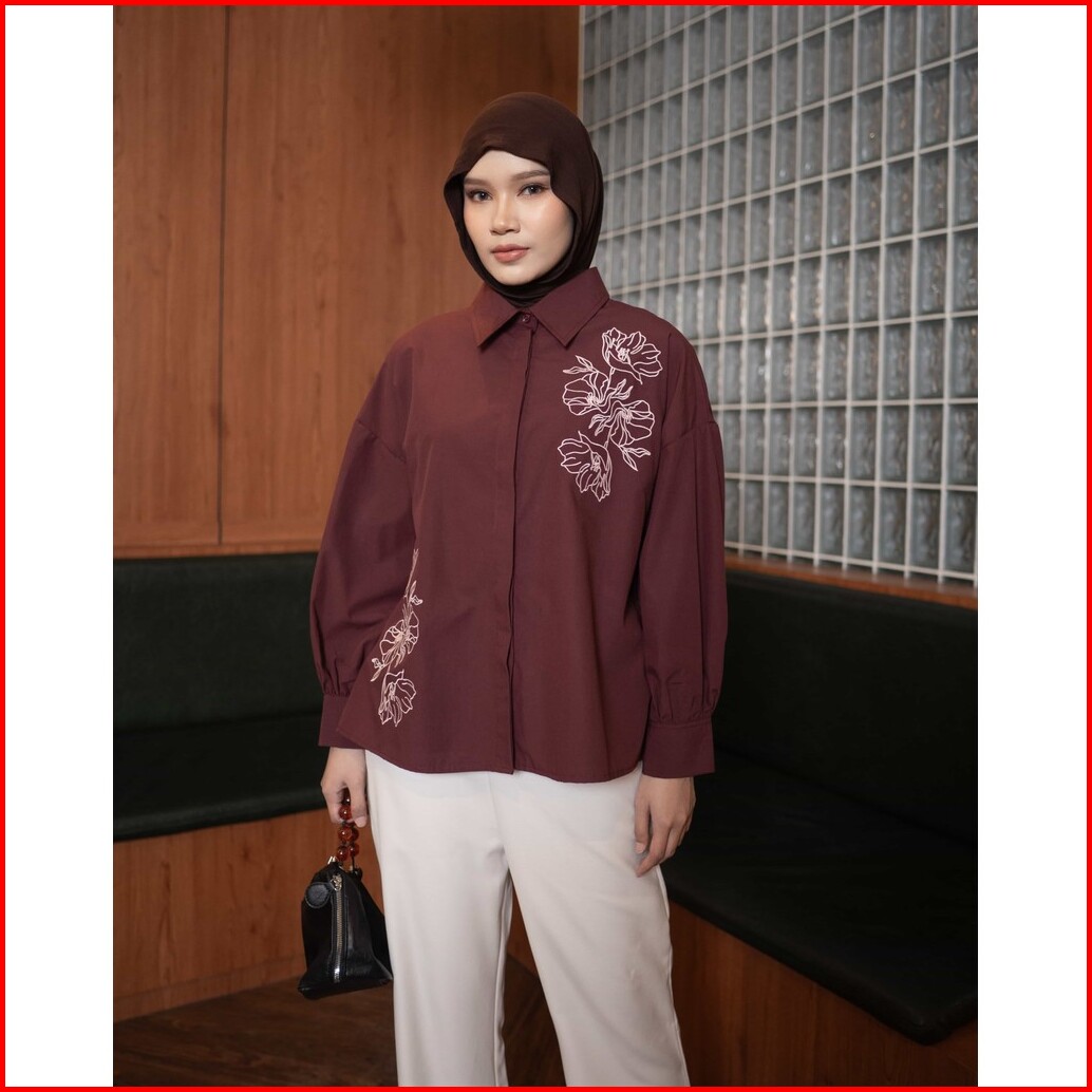 Mayoutfit Louna Shirt Kemeja Wanita Poplin Bordir Floral Embroidery