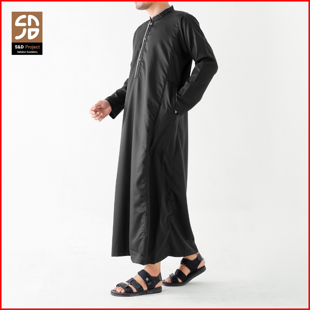 S D Project Baju Gamis Jubah Muslim Bahan Toyobo Warna Hitam M-xl Untuk Pria Dewasa Lengan Panjang
