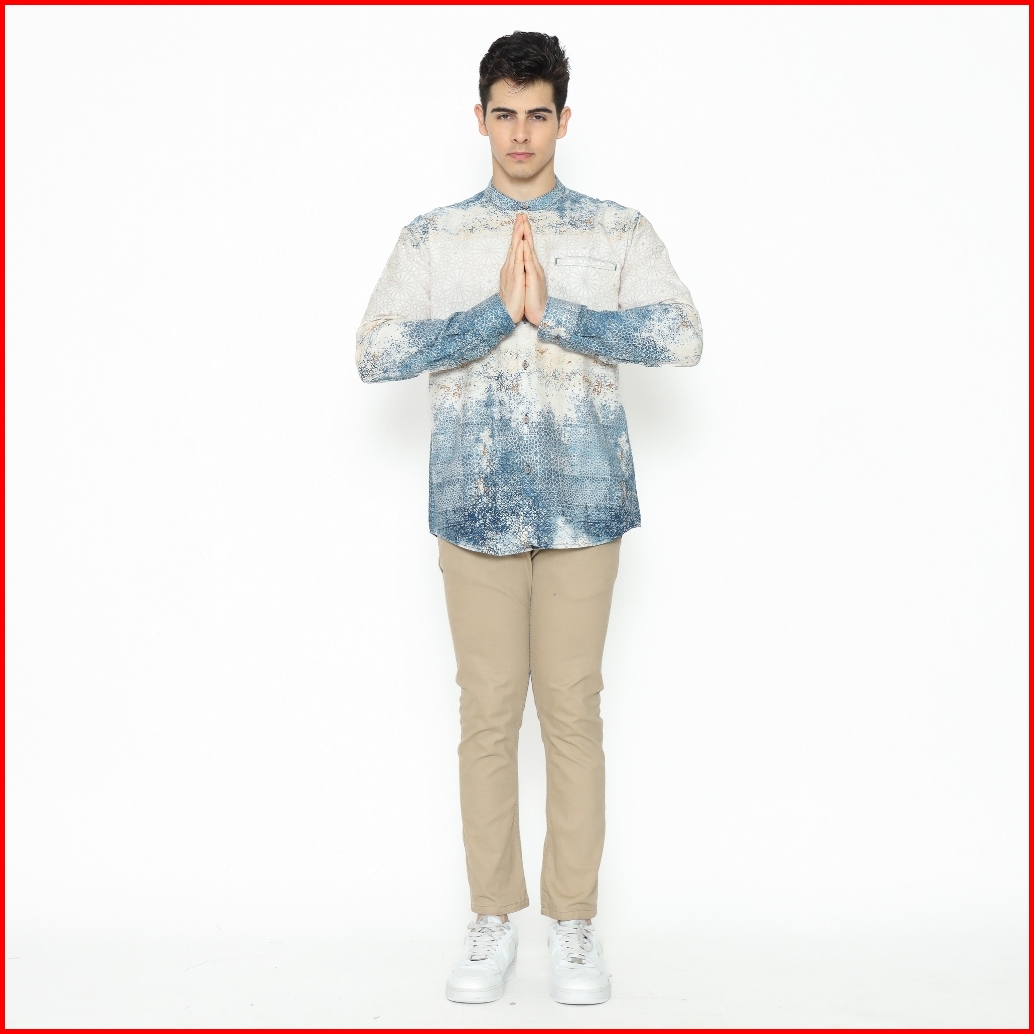 Amk Kemeja Koko Pria Printing Lengan Panjang Kk Nizam L S Green