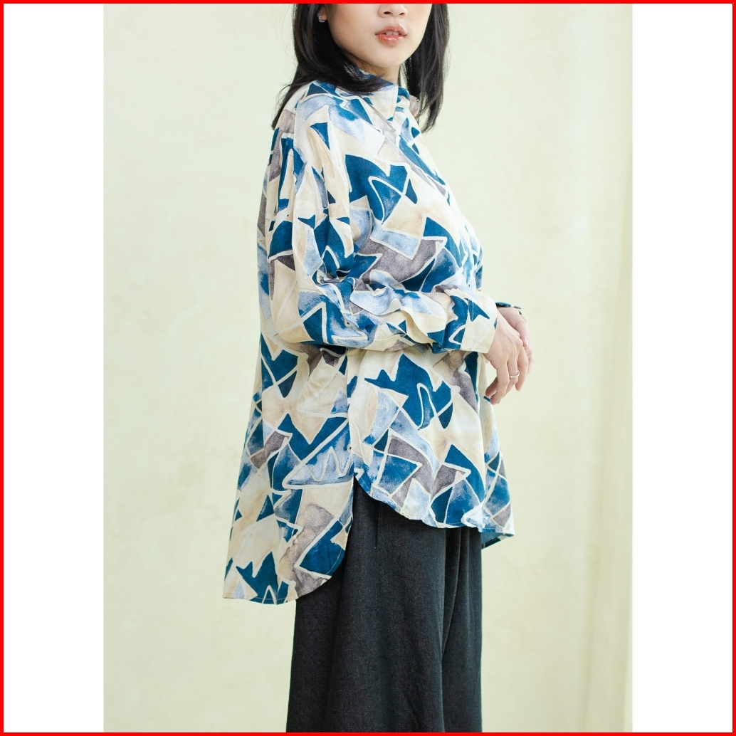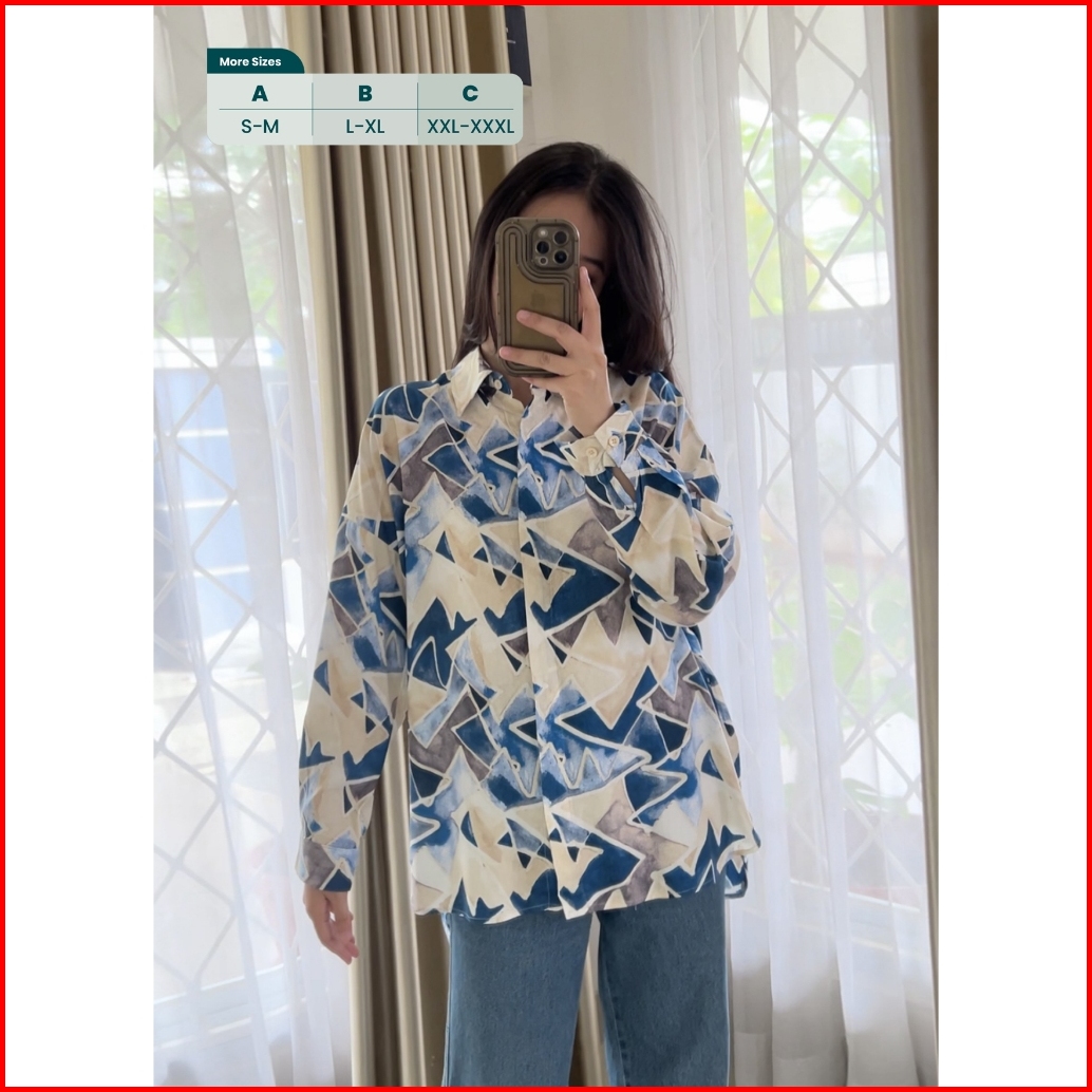 Ixora Danbi Oversized Shirt - Kemeja Wanita Oversize Lengan Panjang Motif Abstrak