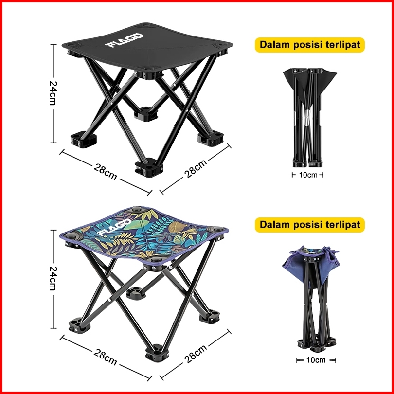 Flago Kursi Lipat Outdoor Portable Bangku Lipat Serbaguna Kursi Lipat Mancing Mini Tanpa Sandaran