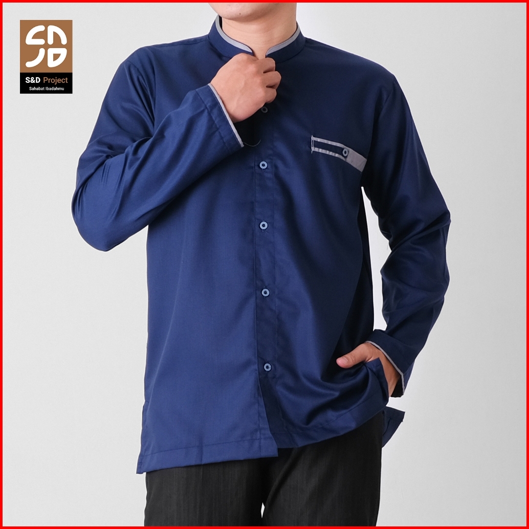 S D Project Baju Koko Muslim Bahan Toyobo Warna Navy S-xl Untuk Pria Dewasa Lengan Panjang 01