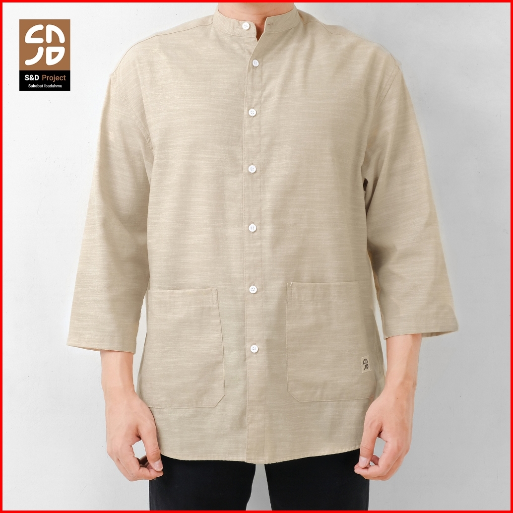 S D Project Baju Koko Muslim Tameez Bahan Oxford Premium Warna Light Beige M-xl Untuk Pria Dewasa Lengan 7 8 Oversize