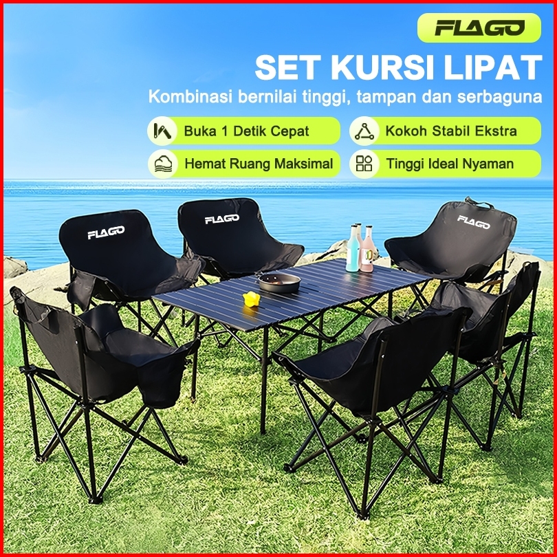 Flago Meja Kursi Lipat Outdoor 1 Set Meja Lipat Portable Kursi Lipat Lebar Dan Tebal Beban 200kg