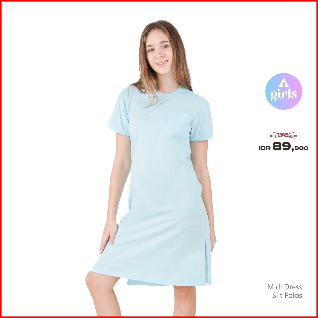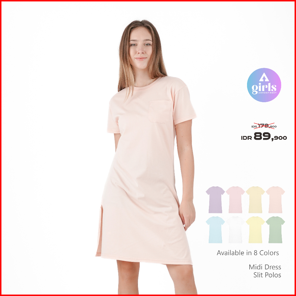 Aerostreet T Shirt Midi Dress Narumi Polos Cerah Kb1aa