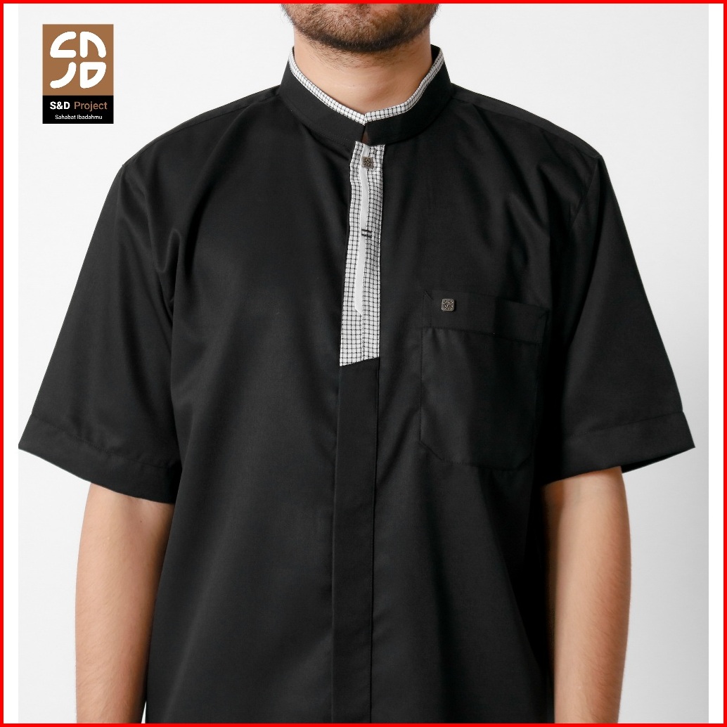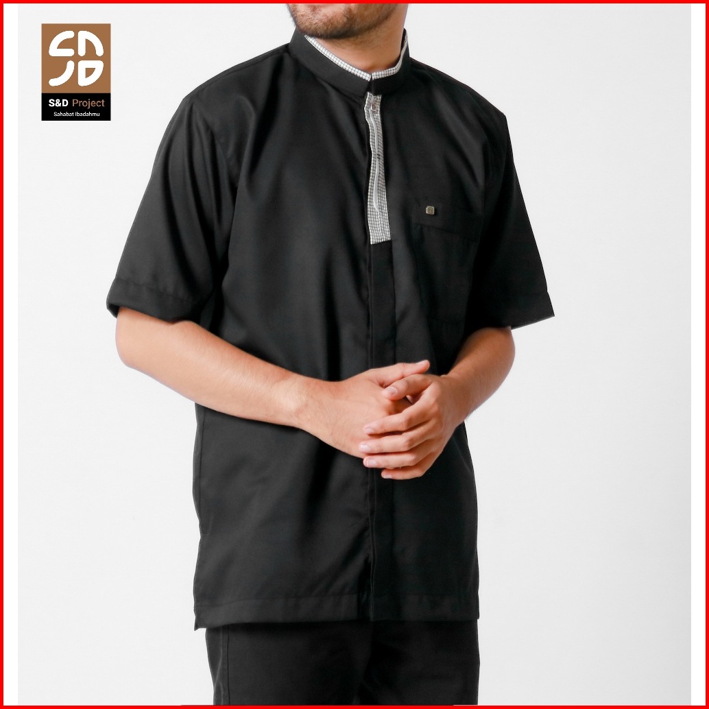 S D Project Baju Koko Muslim Ziyan Bahan Toyobo Warna Hitam M-xl Untuk Pria Dewasa Lengan Pendek