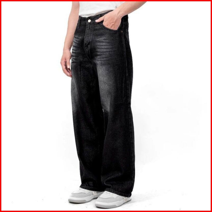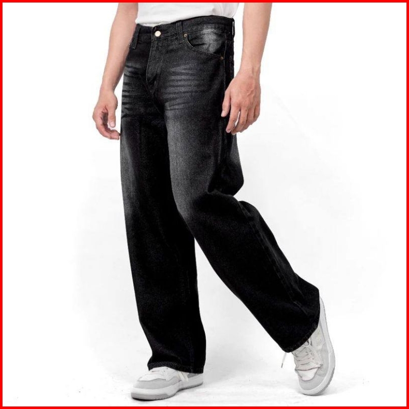 Celana Jeans Pria Baggy Jeans Loose Oversize Gombrong Lebar Skena Black Wishker