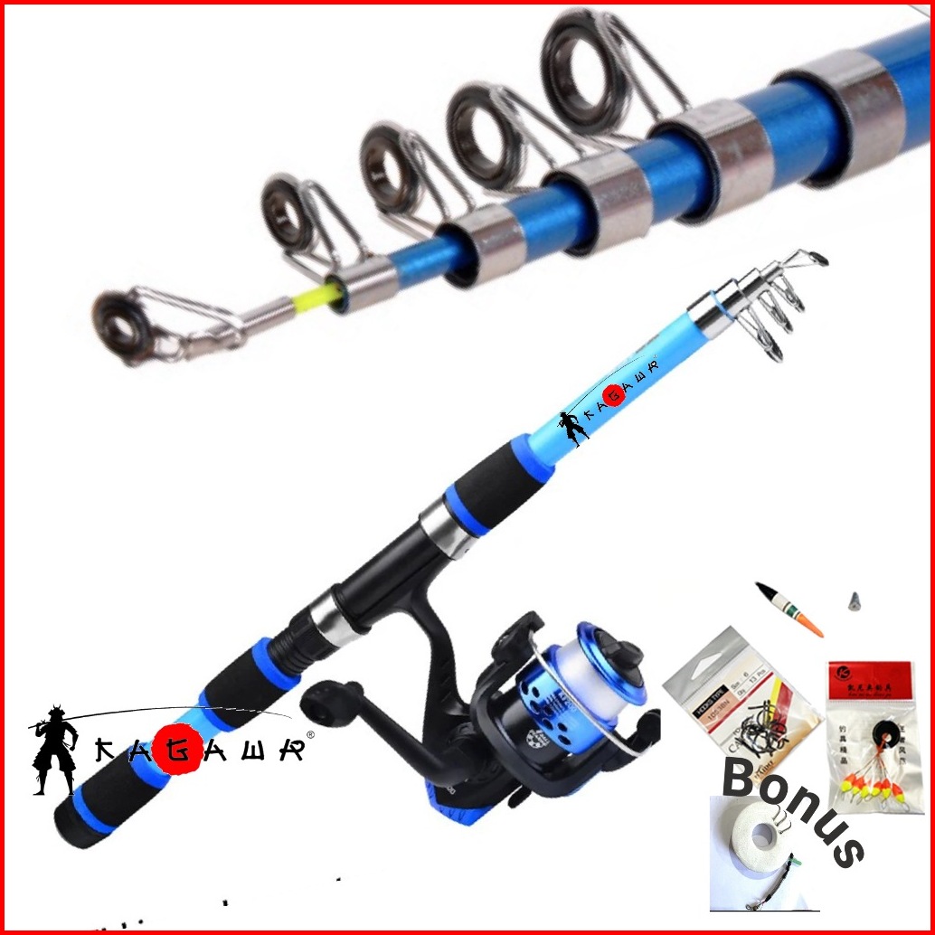 Kagawa Joran Pancing Set Lengkap Dengan Bonus Reel 200 Dan Senar 50m