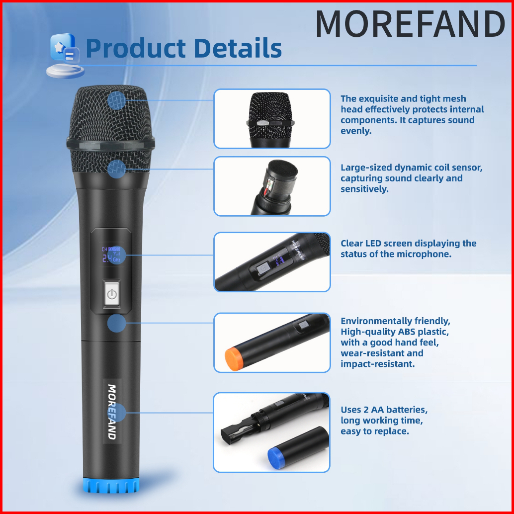 Morefand Profesional Microphone Wireless 308 Mic Mikrofon Nirkabel Mikrofon Bluetooth Untuk Karaoke Genggam Penyebaranuh