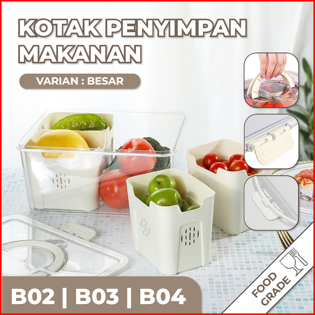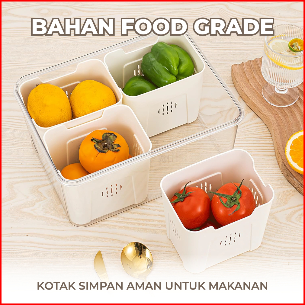 Keep Fresh Kotak Penyimpanan Makanan Storage Toples Box Persegi Kulkas Dengan Sekat Untuk Buah Sayur Kotak Penyimpanan