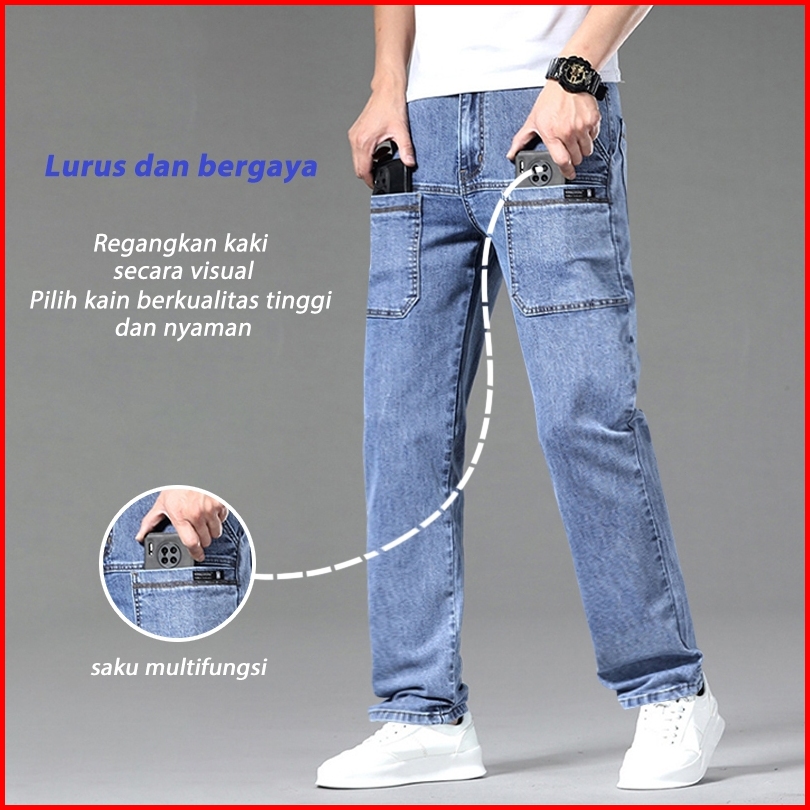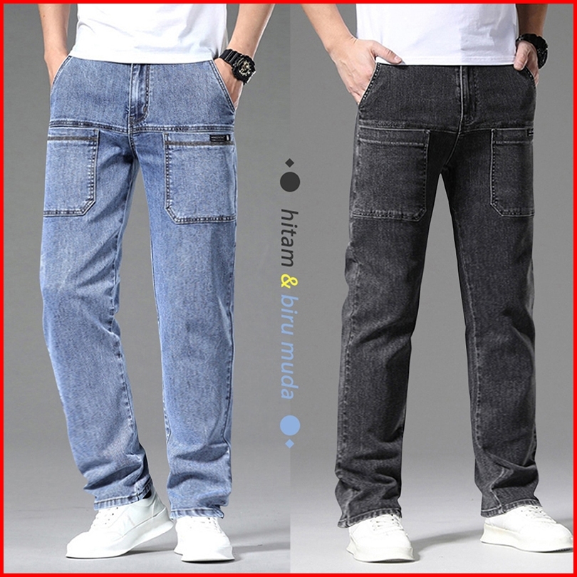 Celana Jeans Pria Celana Jeans Celana Cargo Jeans Pria Korean Style Pria Slim Fit Kulot Kantong Jeans Pria Panjang Model