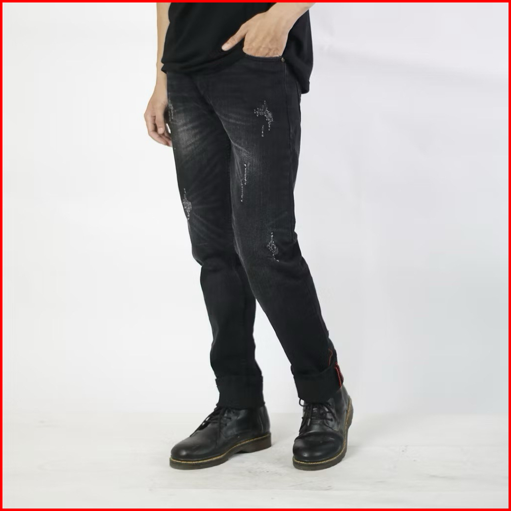 Lightborn Celana Denim Pria Roger Wolfy Black Slimfit Selvedge Long Pant Men