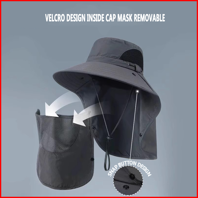 Bitzen Removable Mask Topi Hiking Topi Pancing Topi Outdoor Anti Waterproof Sun Protection Hat