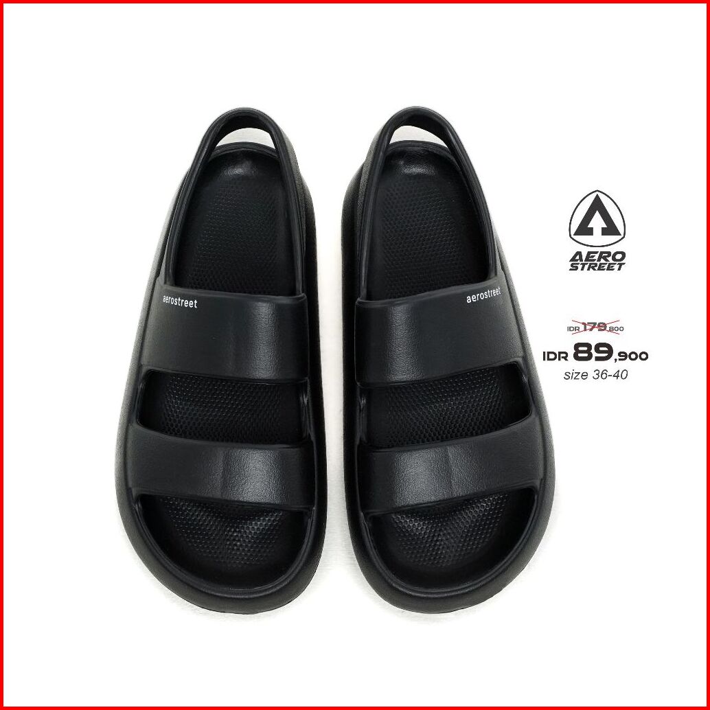 Aerostreet 36-40 Alisa Hitam - Sandal Sendal Selop Slip On Casual Pria Wanita Aerostreet Street B1aaa