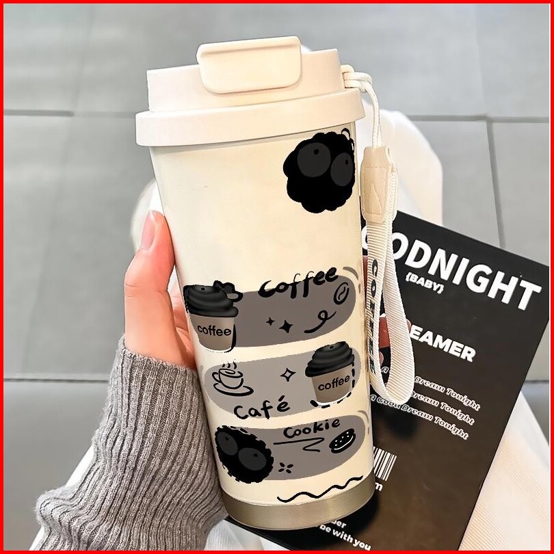 Tumbler Cup 500 Ml Artistic Simple Polanya Coffee Label Termos Custom Kopi Stainless Steel Dengan Sedotan Termos Kopi Ya