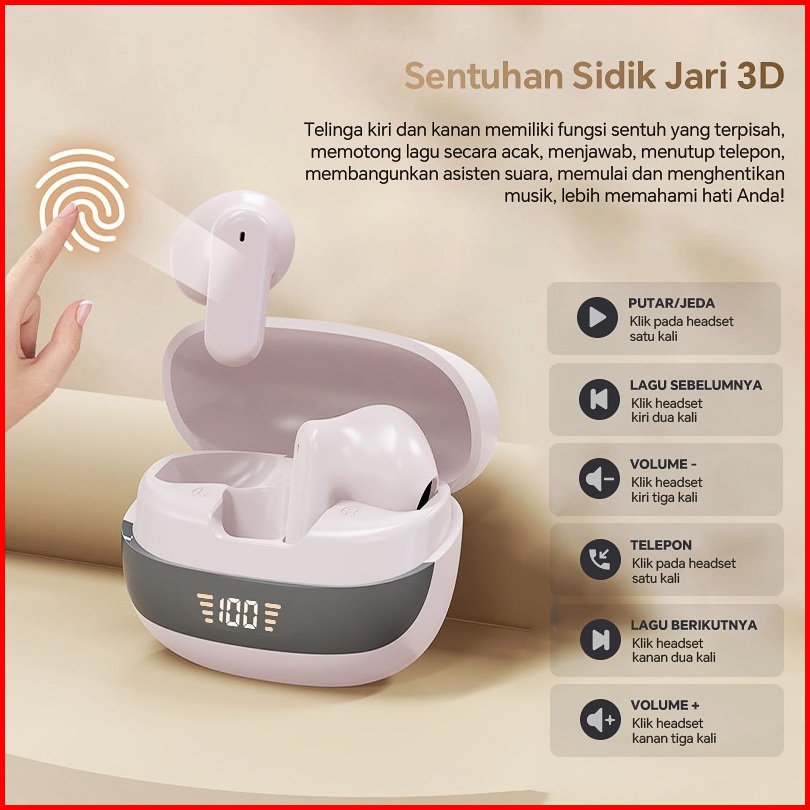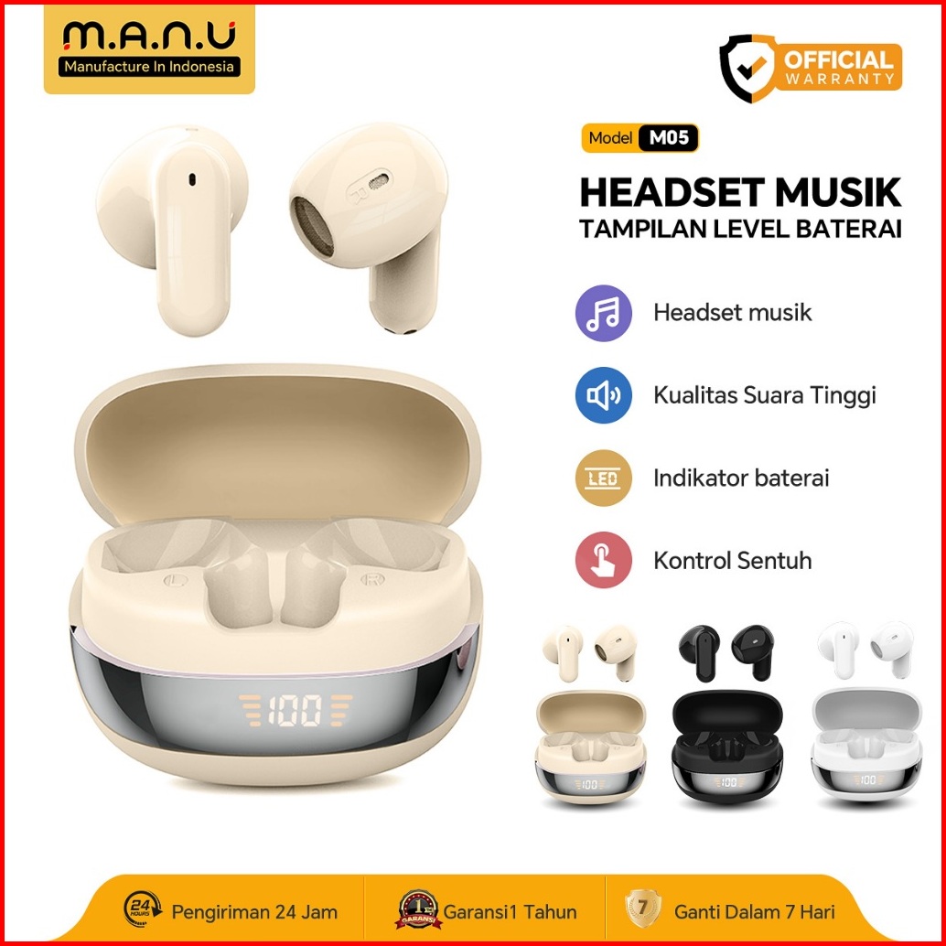 Manu True Wireless Headphone Bluetooth M05 Nirkabel Tws Headset V5.3 Pengurangan Kebisingan Kualitas Suara Tinggi Musik