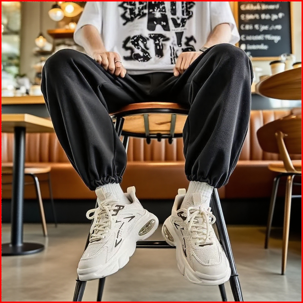 Sepatu Sneaker Pria Gaya Korea Trendy Anti Slip Bernapas Cocok Untuk Lari Kasual Kerja Warna Krim Hitam