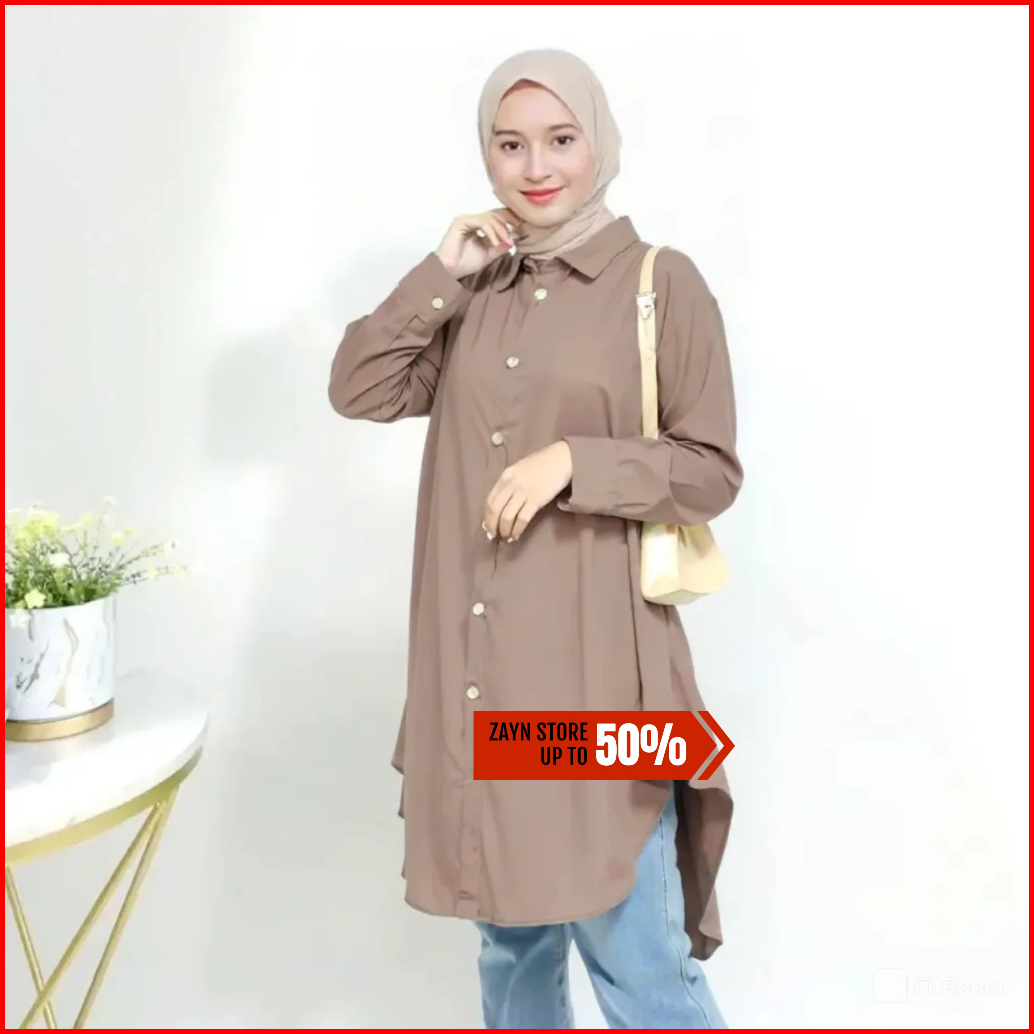Atasan Tunik Rayon Twill Premium Moela Tunik Polos Lengan Panjang Terbaru 2025