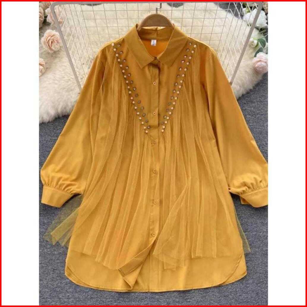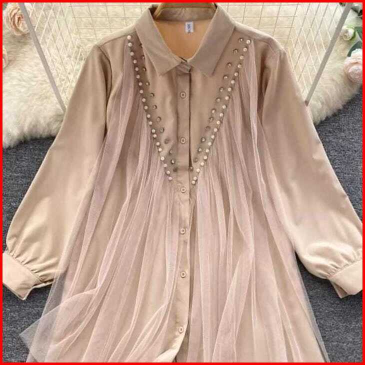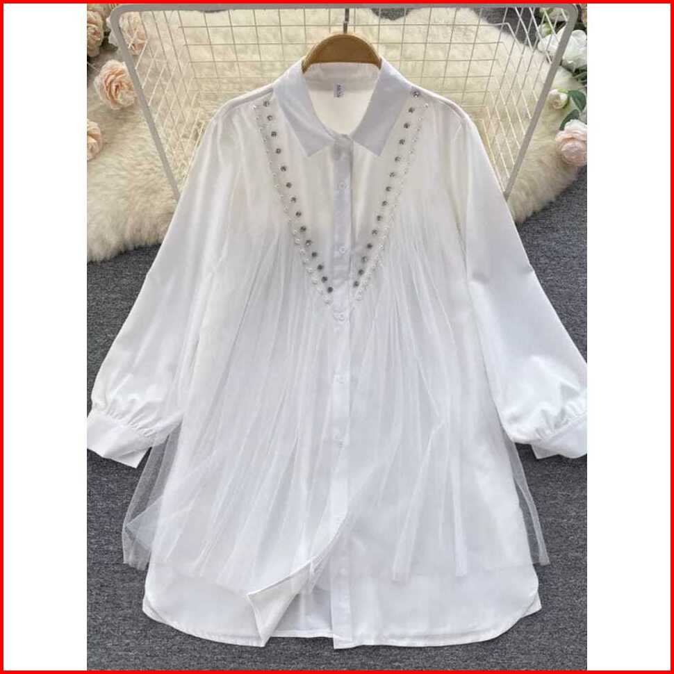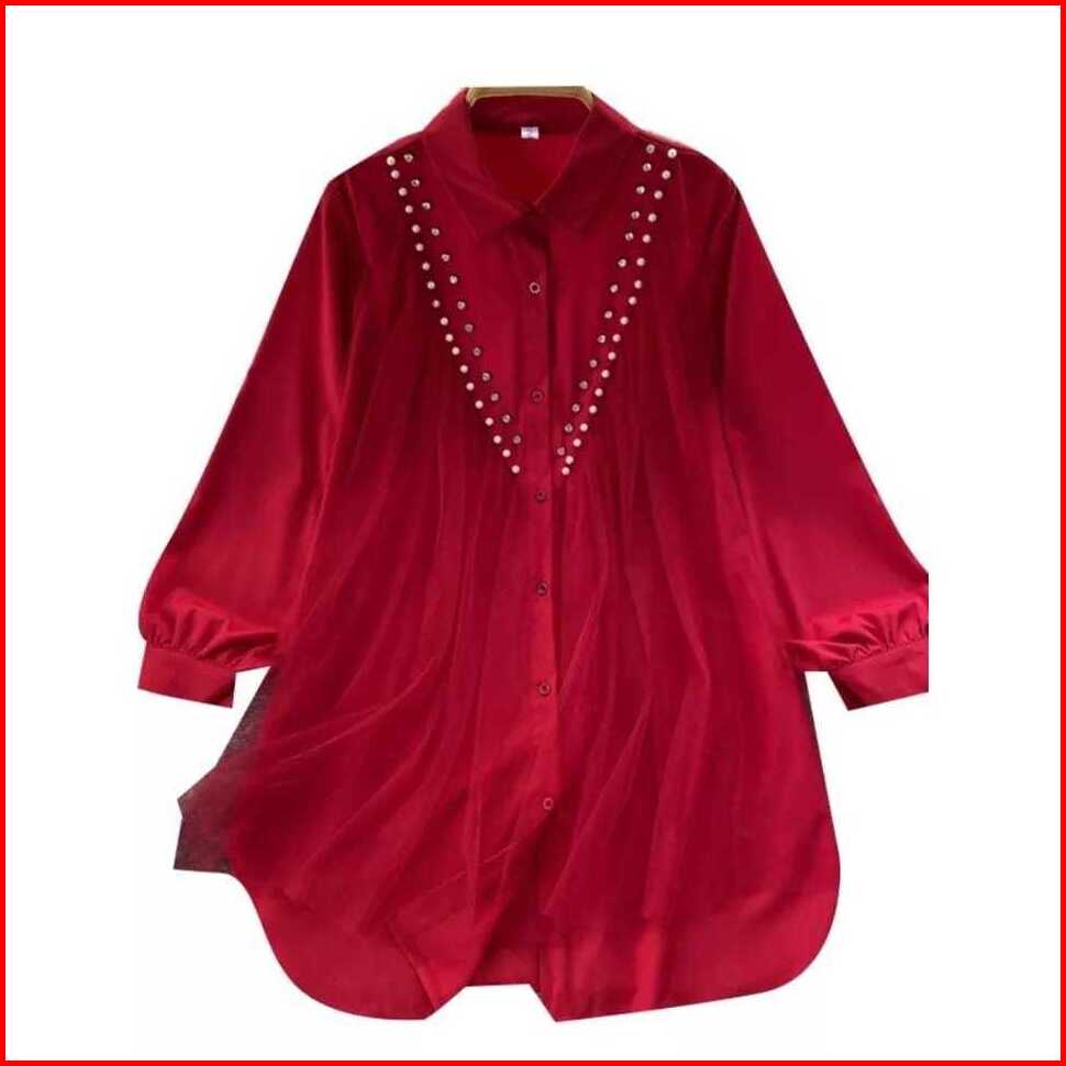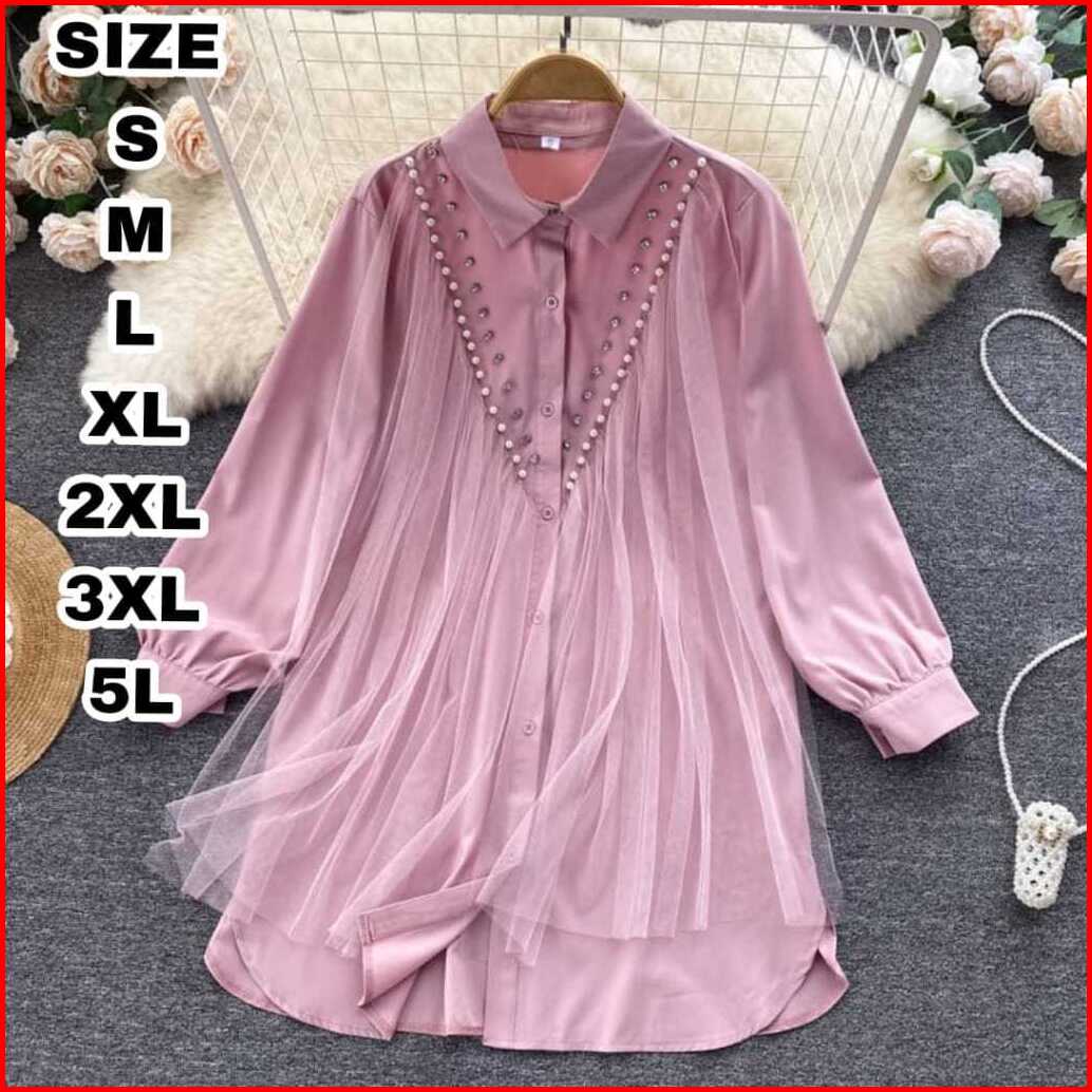 Raisa Tunik Wanita Mix Tile Aplikasi Mutiara Jumbo Tunik Big Size Tunik Over Size S M L Xl Xxl 3xl 5 L Atasan Kancing