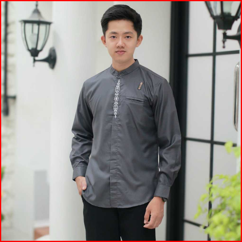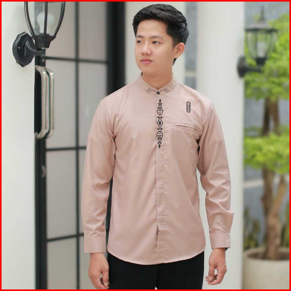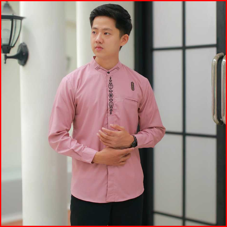 Kemeja Baju Koko Dusty Pink Pria Lengan Panjang Size S M L Xl Xxl Terbaru Motif Surya Kombinasi Bordir Bahan Toyobo Prem
