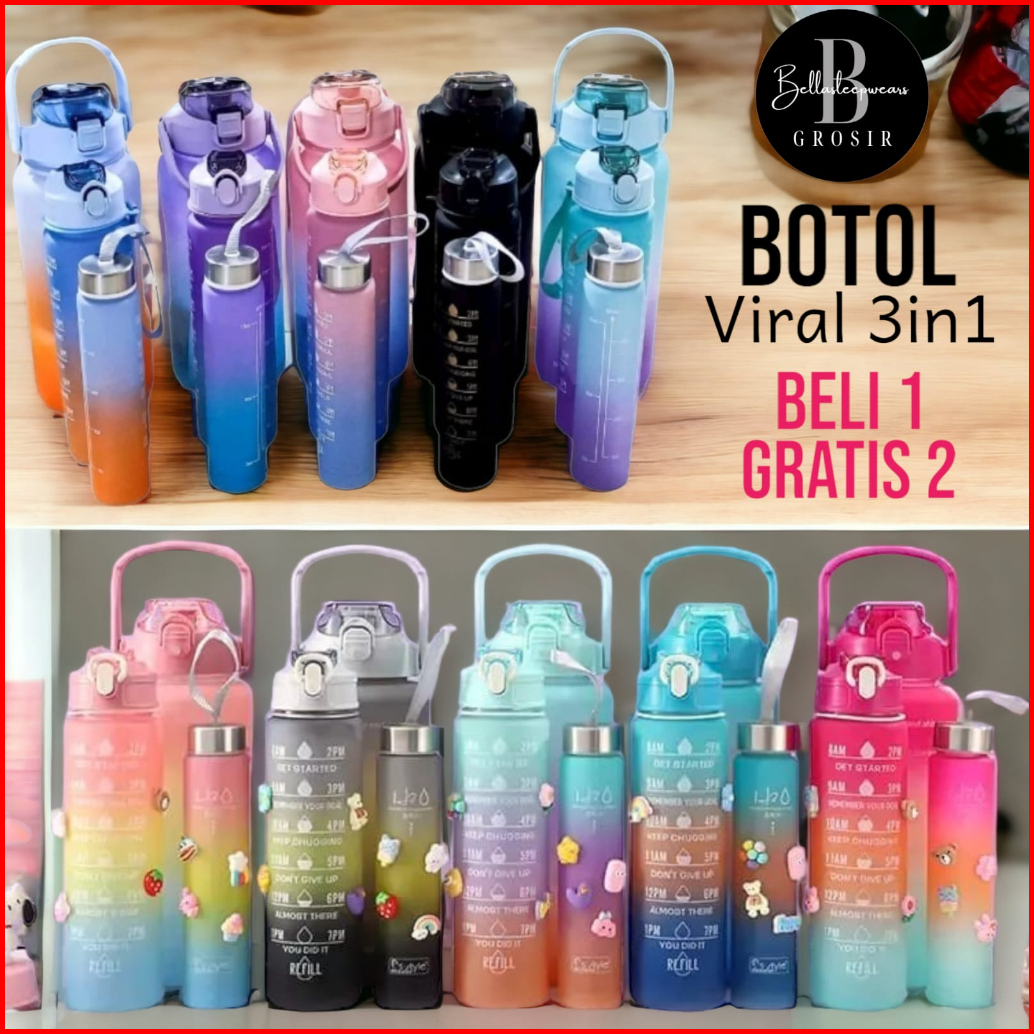 Bella 3in1 Botol Viral Beranak Gradasi Sanrio Polos Magic Gradasi Viral Bpa Free Sedotan Stiker 2d 3d