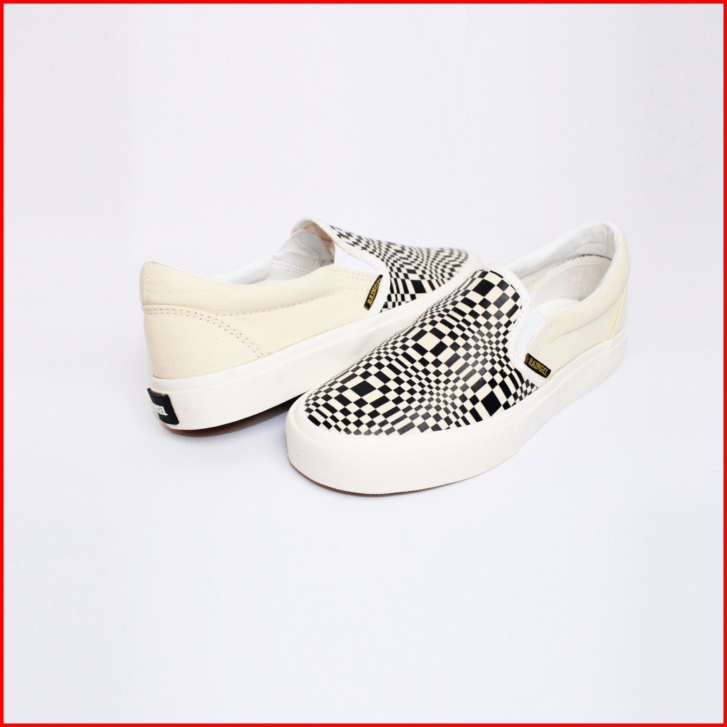 Raingel Wrap Checkher - Sepatu Slip On Local Brand - Cream