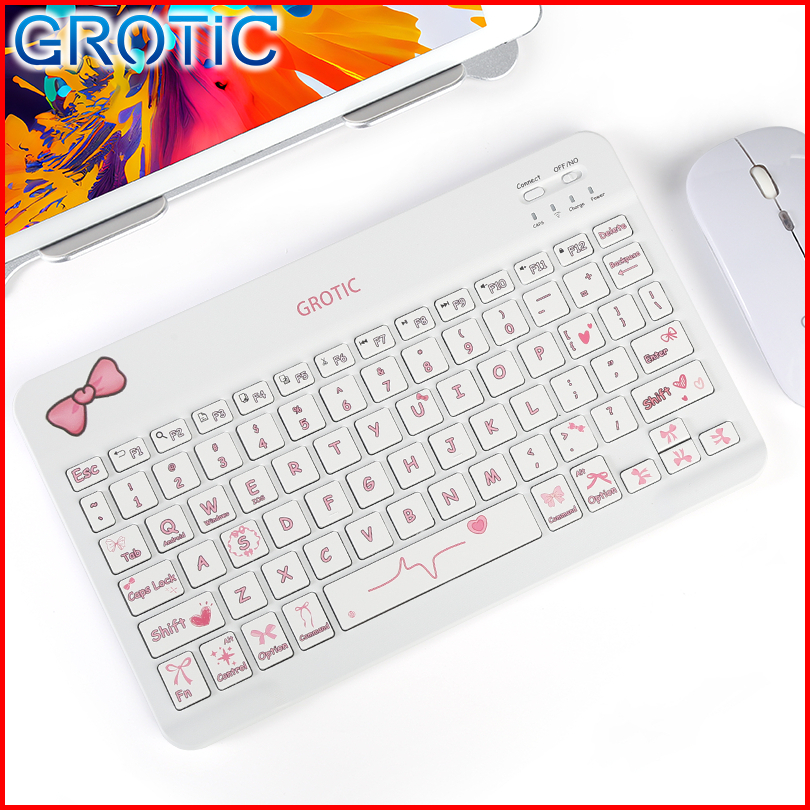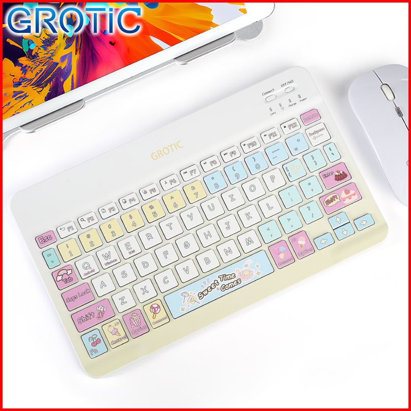 Grotic Keyboard Set Mouse Bluetooth Wireless 10 Inch Colorful Theme Keyboard For Ipad Laptop Android Iphone