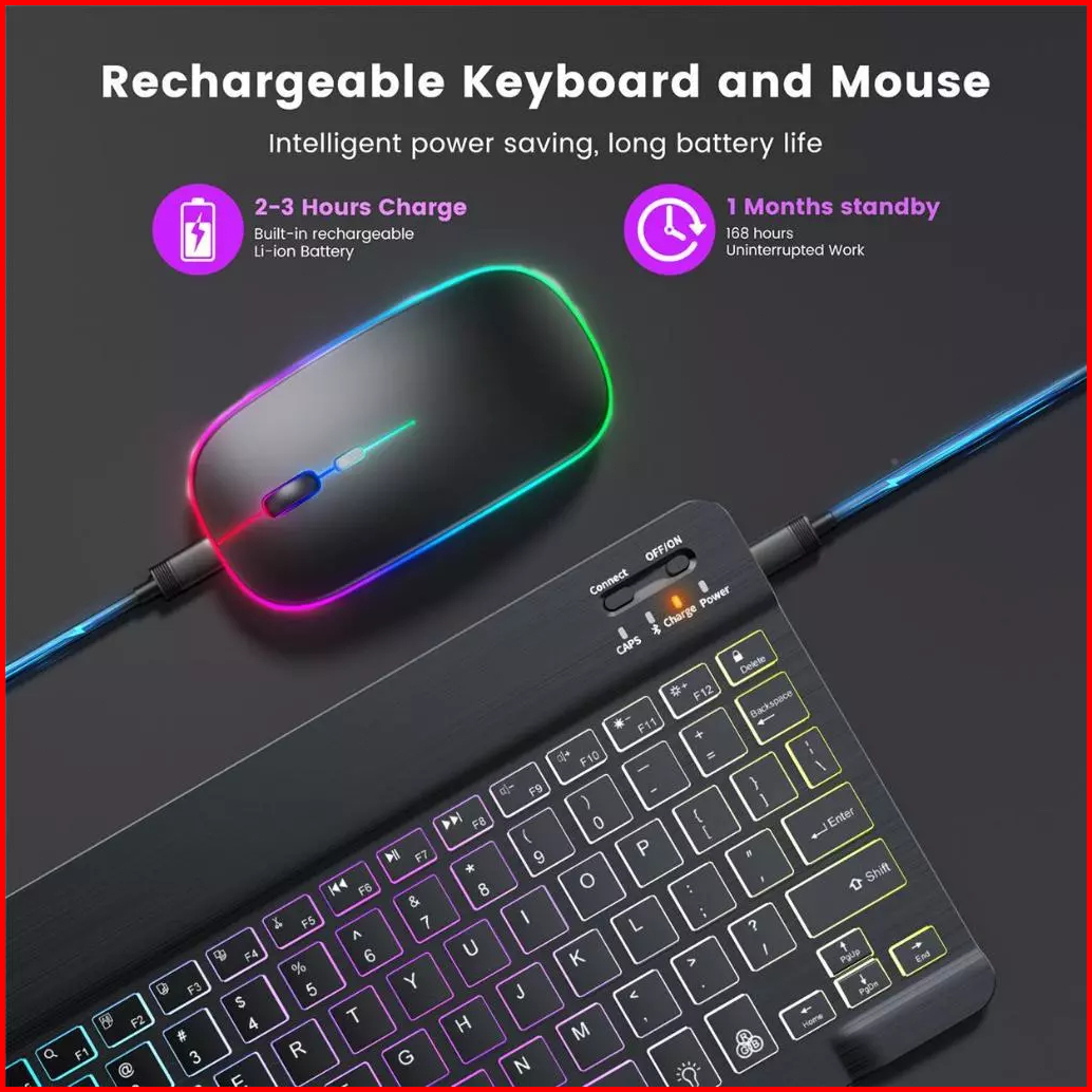 10 Inch Backlit Backlight Keyboard Wireless Keyboard And Mouse Set Led Colorful Bluetooth Keyboard For Ipad Laptop Andro