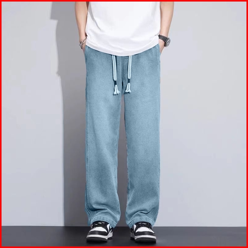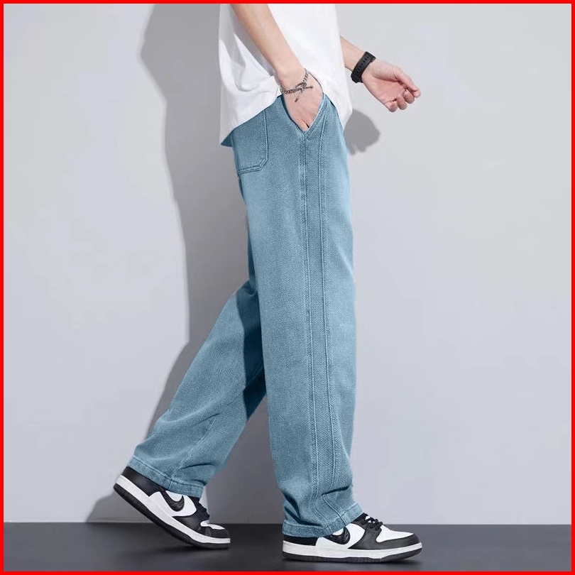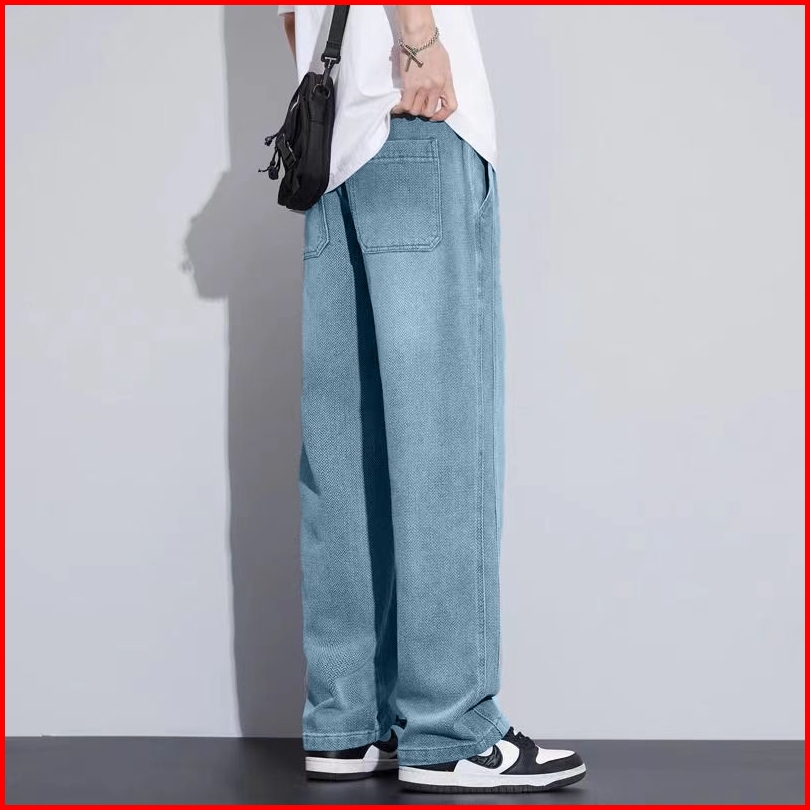 Celana Jeans Pria Baggy Panjang Korean Style Loose Pants Casual Biru Fashion Celana Denim Pinggang Karet Keren Cowo