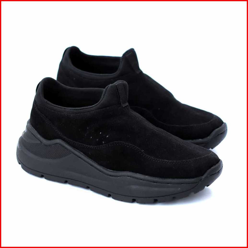 Sepatu Pria Sneakers Casual Hitam Full Suede