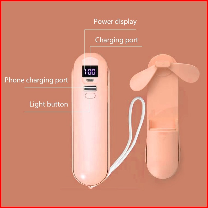 Jovitech Headset Led Kipas Powerbank 4 In 1 Wireless Earphone Mini Fan Flashlight Powerbank - T64