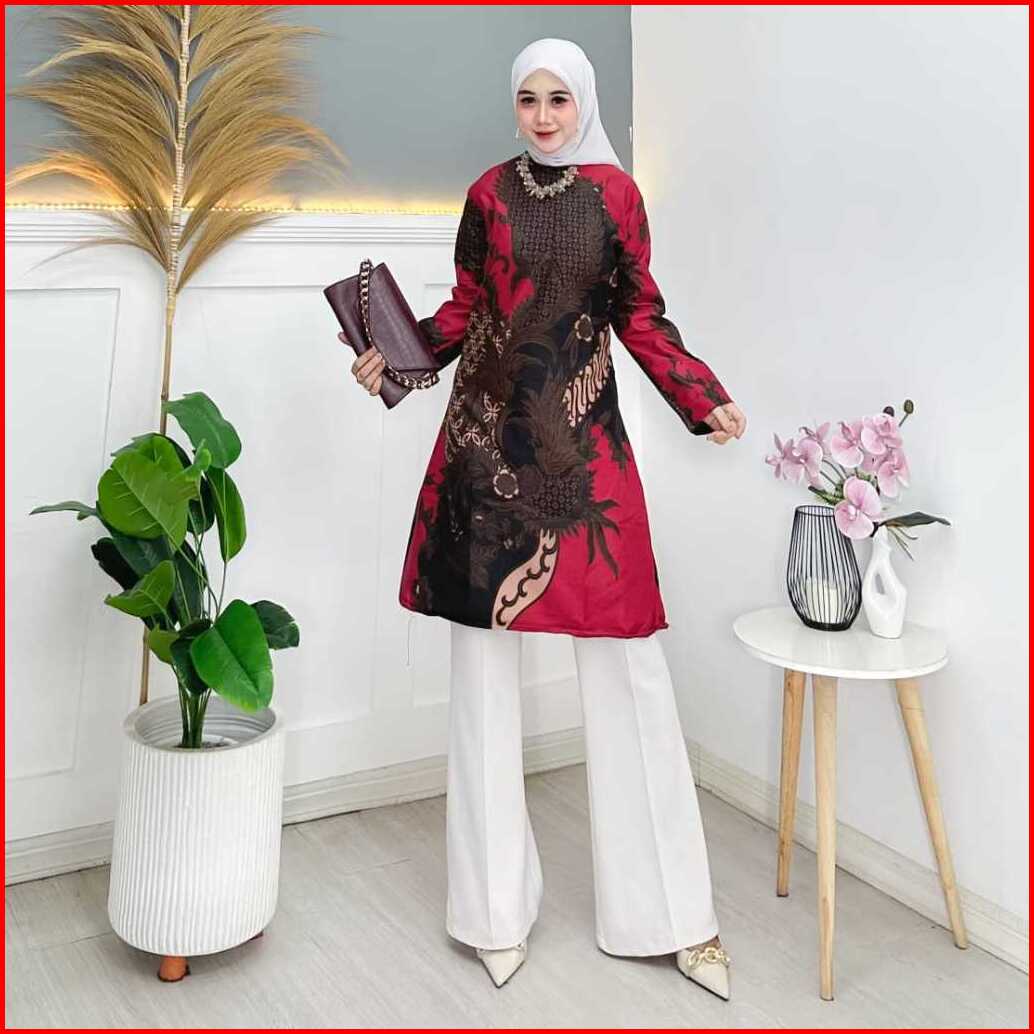 Baju Tunik Batik Muslimah Kekinian Atasan Batik Wanita Modern M - 7l Untuk Kerja Acara Formal