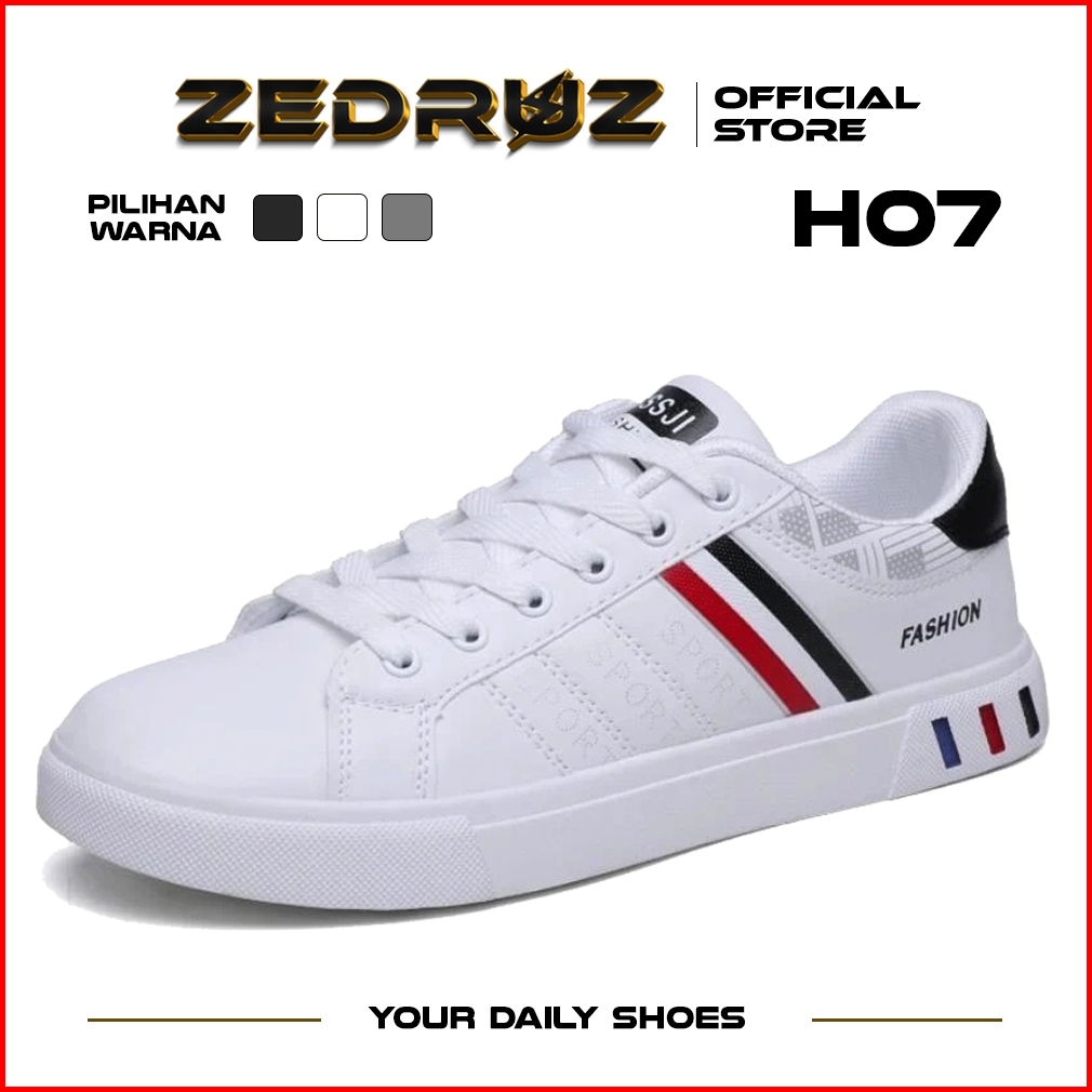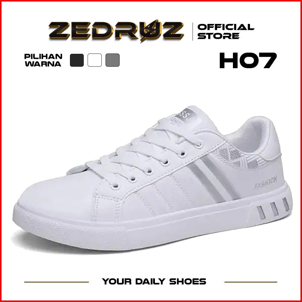 Zedruz Sepatu Sneakers Tali Pria Casual Krem Sekolah Kerja Sport Shoes Kekinian Muda Black H07