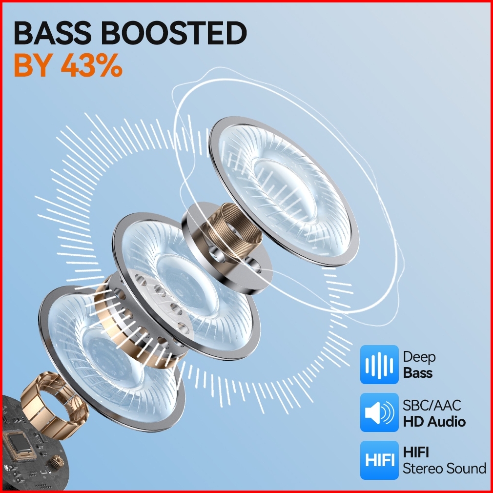 Goojodoq Tws-a5 Earphone Bluetooth 5.3 Headphones Wireless Sports Bass Noise Reduction Battery Efficient Quick Pairing