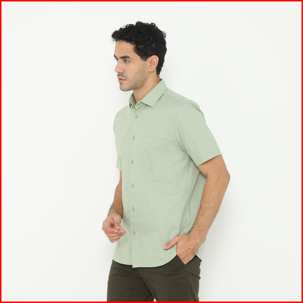 Men Clo Kemeja Pria Basic Polos Lengan Pendek Katun Sage Green 73511