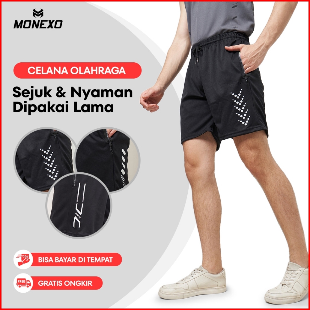 Monexo - Celana Olahraga Pria Jogging Gym Fitness Celana Pendek Kolor Pria Saku Restletting Cmn13