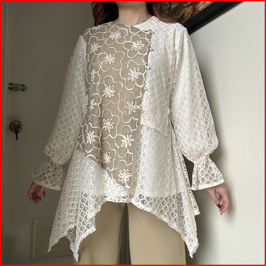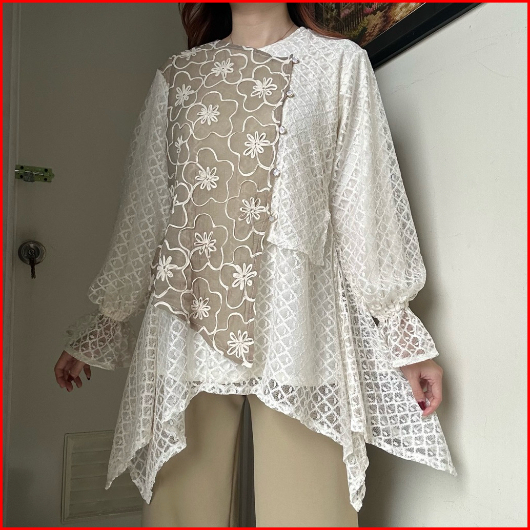 Syabil Bkk Top Atasan Blouse Kemeja Tunik Wanita Tensel Katun Bordir Renda Viral Korean Style By Biel The Label