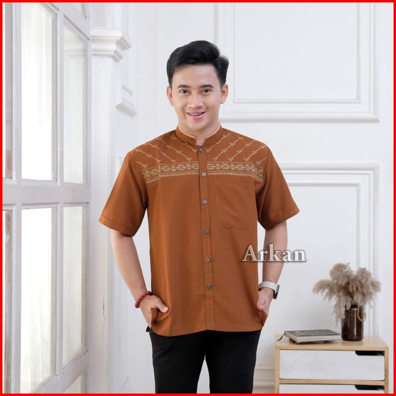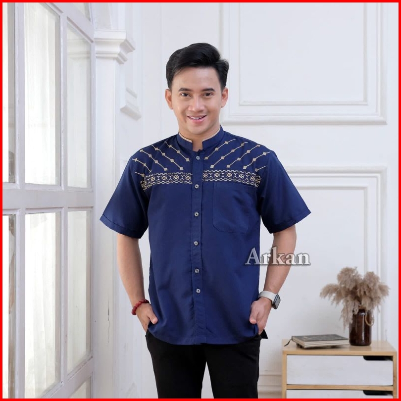 Promo Termurah Baju Koko Arkan Kemeja Lengan Pendek Kain Vito Signature Premium Motif Bordir Mewah