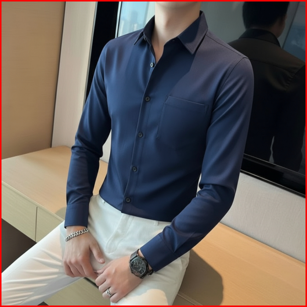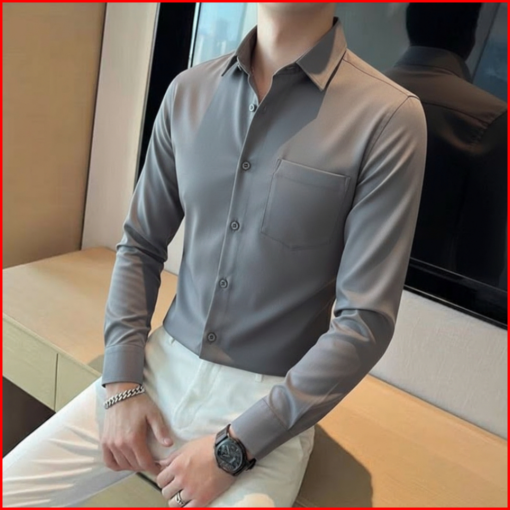 Twin Salamangka Kemeja Pria Polos Lengan Panjang