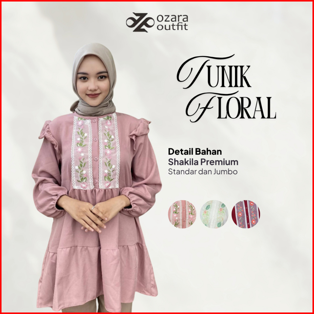 Tunik Renda Floral Atasan Wanita Ozara Outfit Shakila Premium