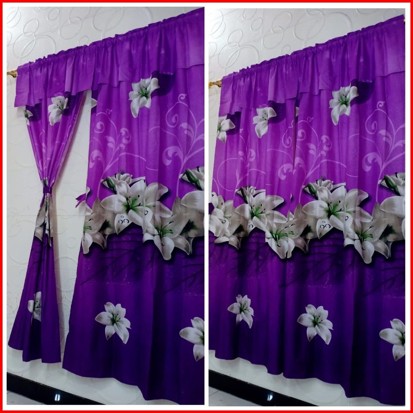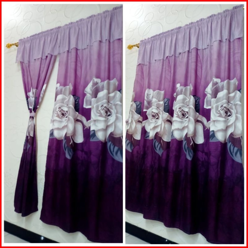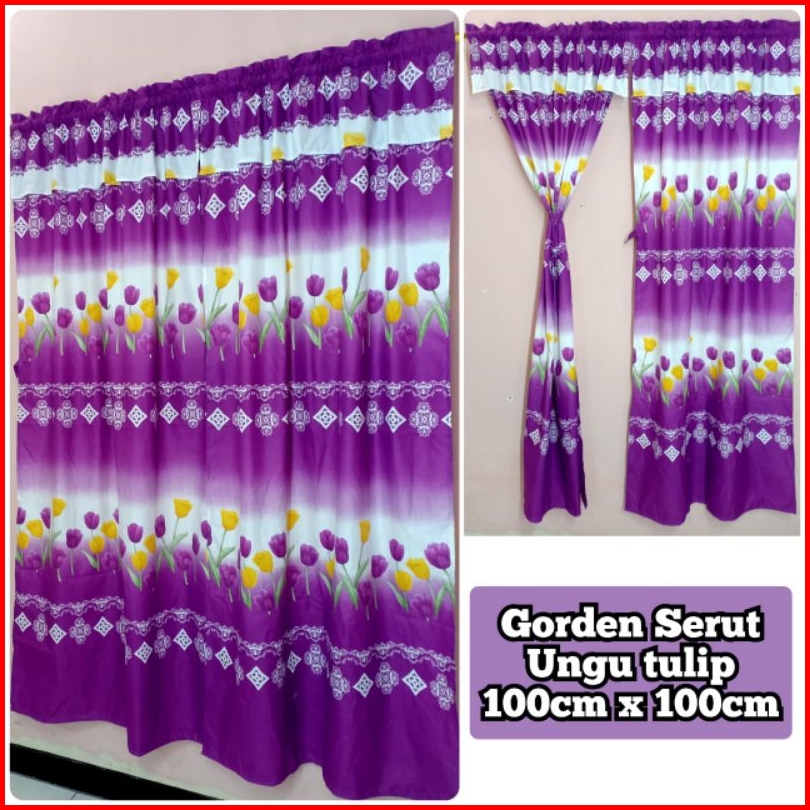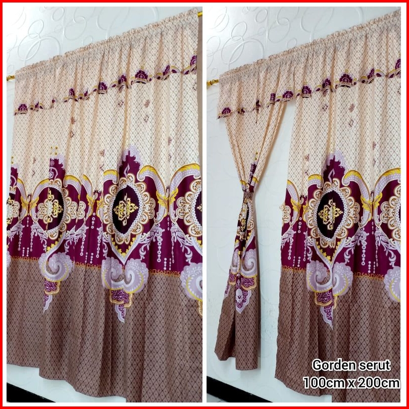 Paket 100rb Dapat 4pcs Gorden Pintu Jendela Model Poni Serut Tali 100x200 Katun Disperse Adem Tidak Luntur Murah